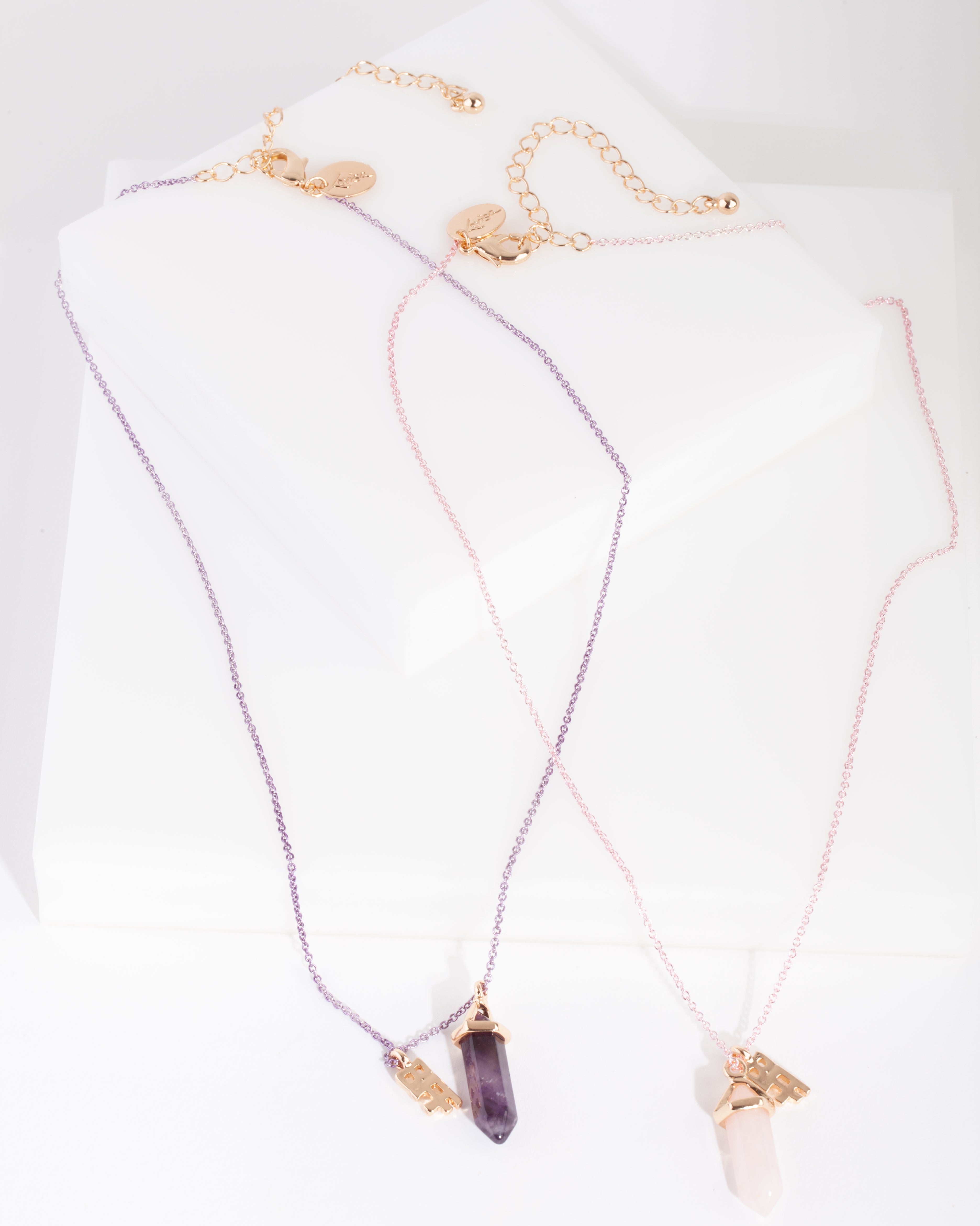 This two pack of coated metal necklaces make the perfect gift for your best friend. Keep one for yourself and match each other in your BFF shard drop necklaces!