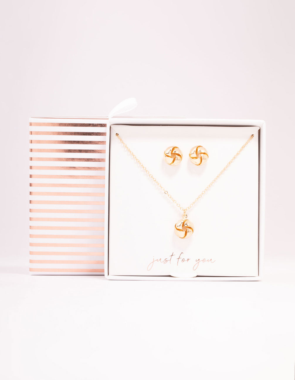 • Gold Knotted Necklace & Stud Earrings Set - link has visual effect only