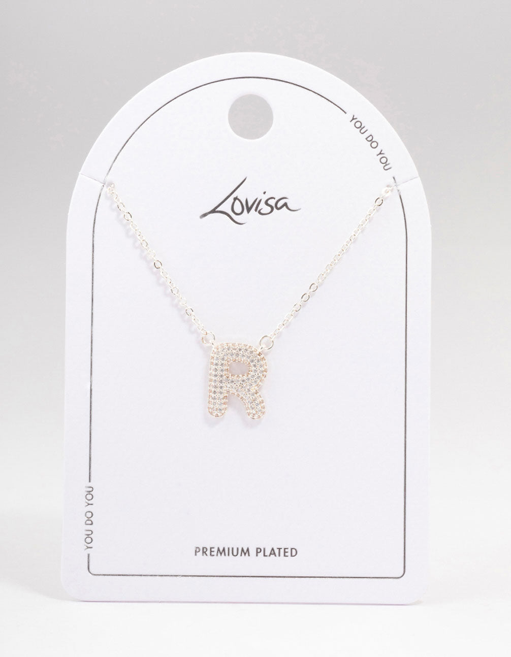 Letter R Silver Plated Pave Pendant Initial Necklace Letter R Silver Plated Pave Pendant Initial Necklace Letter R Silver Plated Pave Pendant Initial Necklace