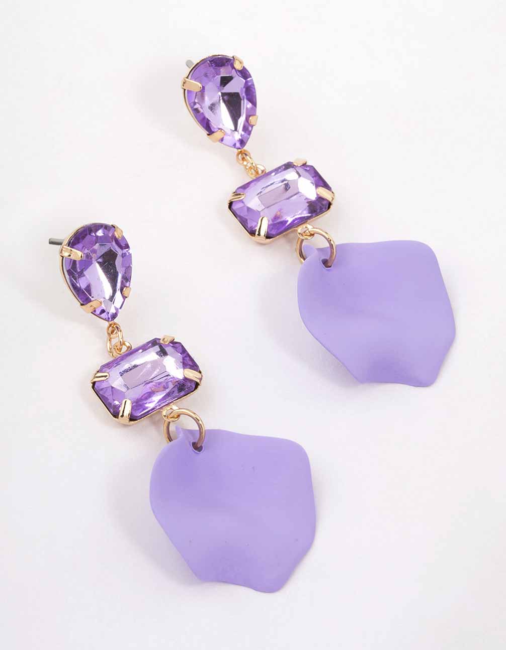 Lilac Pear & Rectangle Diamante Petal Drop Earrings