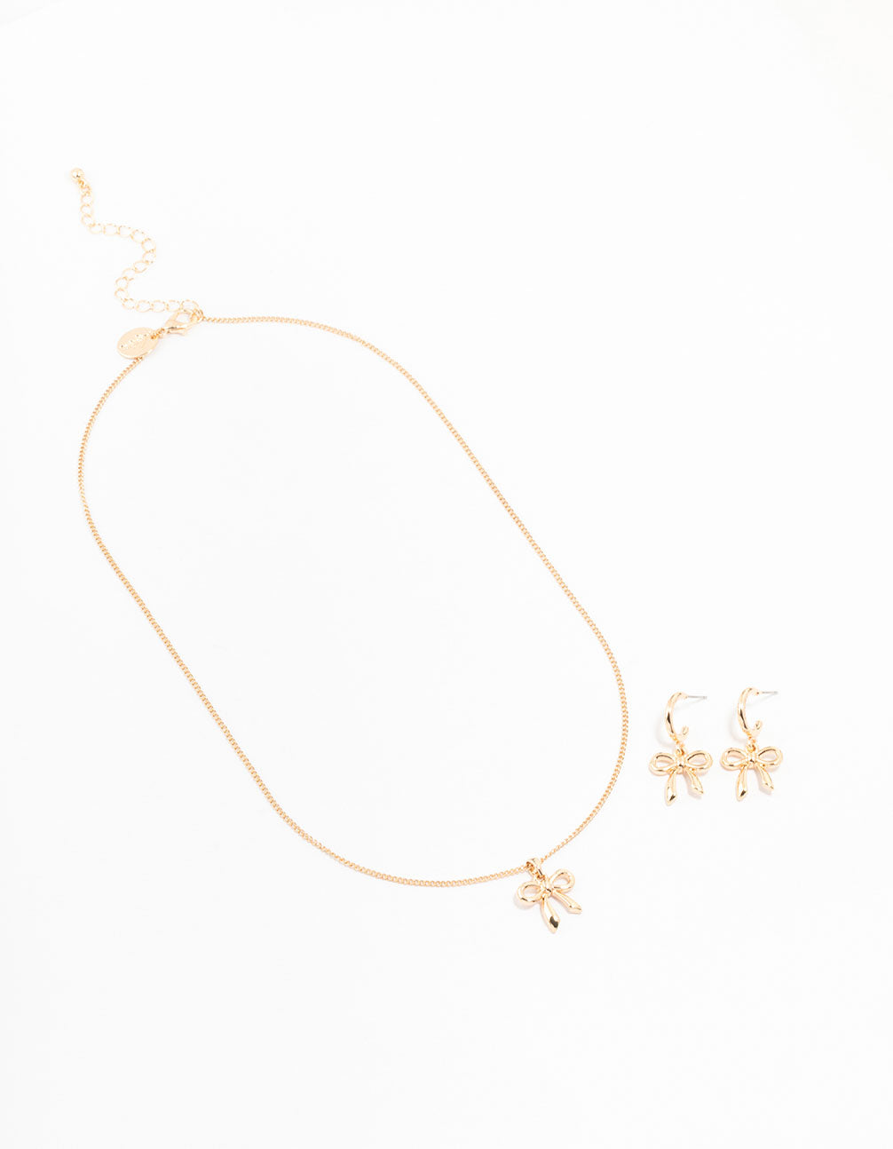 Lovely Gold Bow Necklace & Earring Set Lovely Gold Bow Necklace & Earring Set