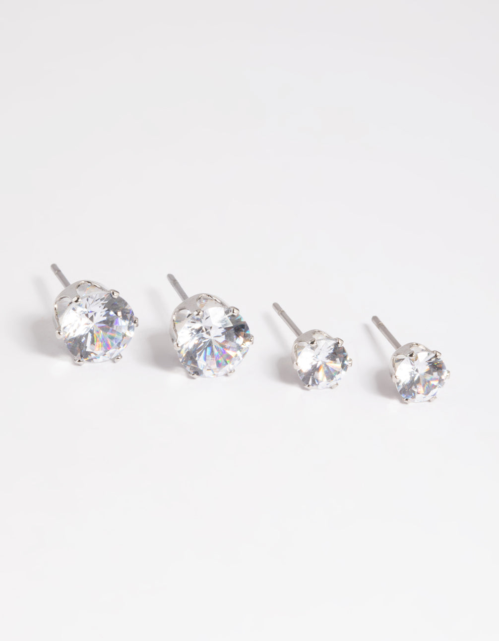 Silver Diamond Simulant Classic Stud Earring Set