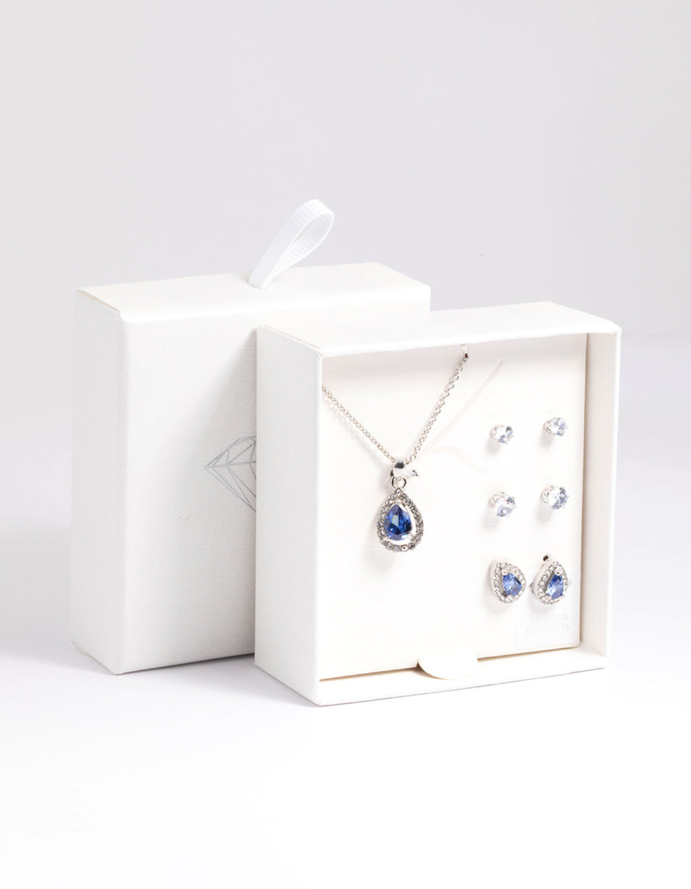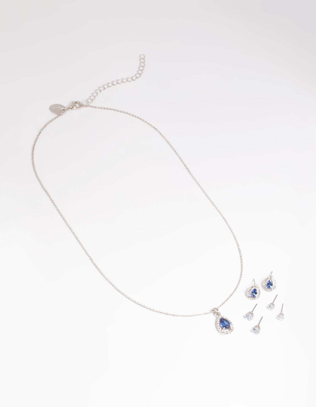 Diamond Simulant Sapphire Necklace & Earrings Set