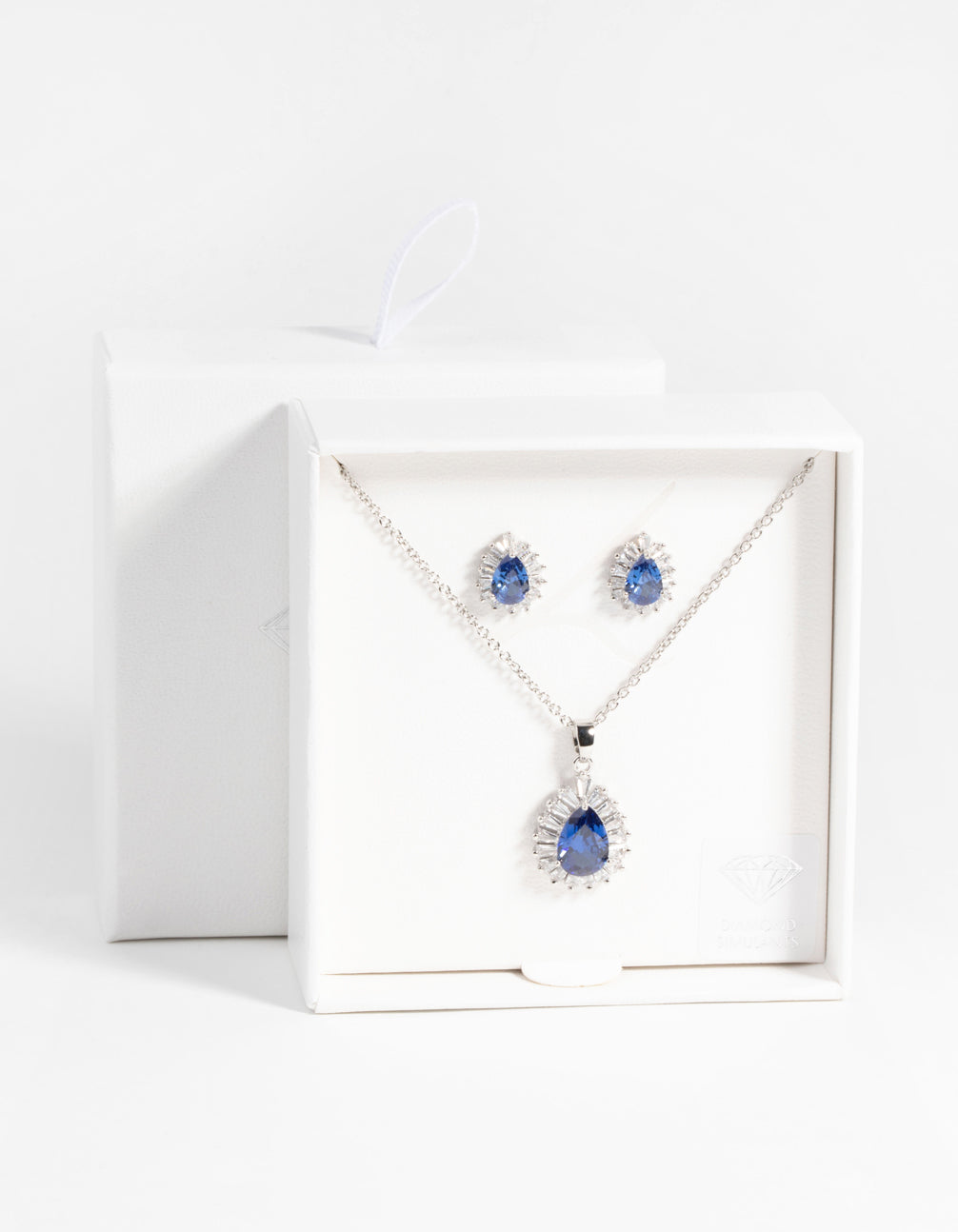 Sapphire Diamond Simulant Necklace & Earrings Set