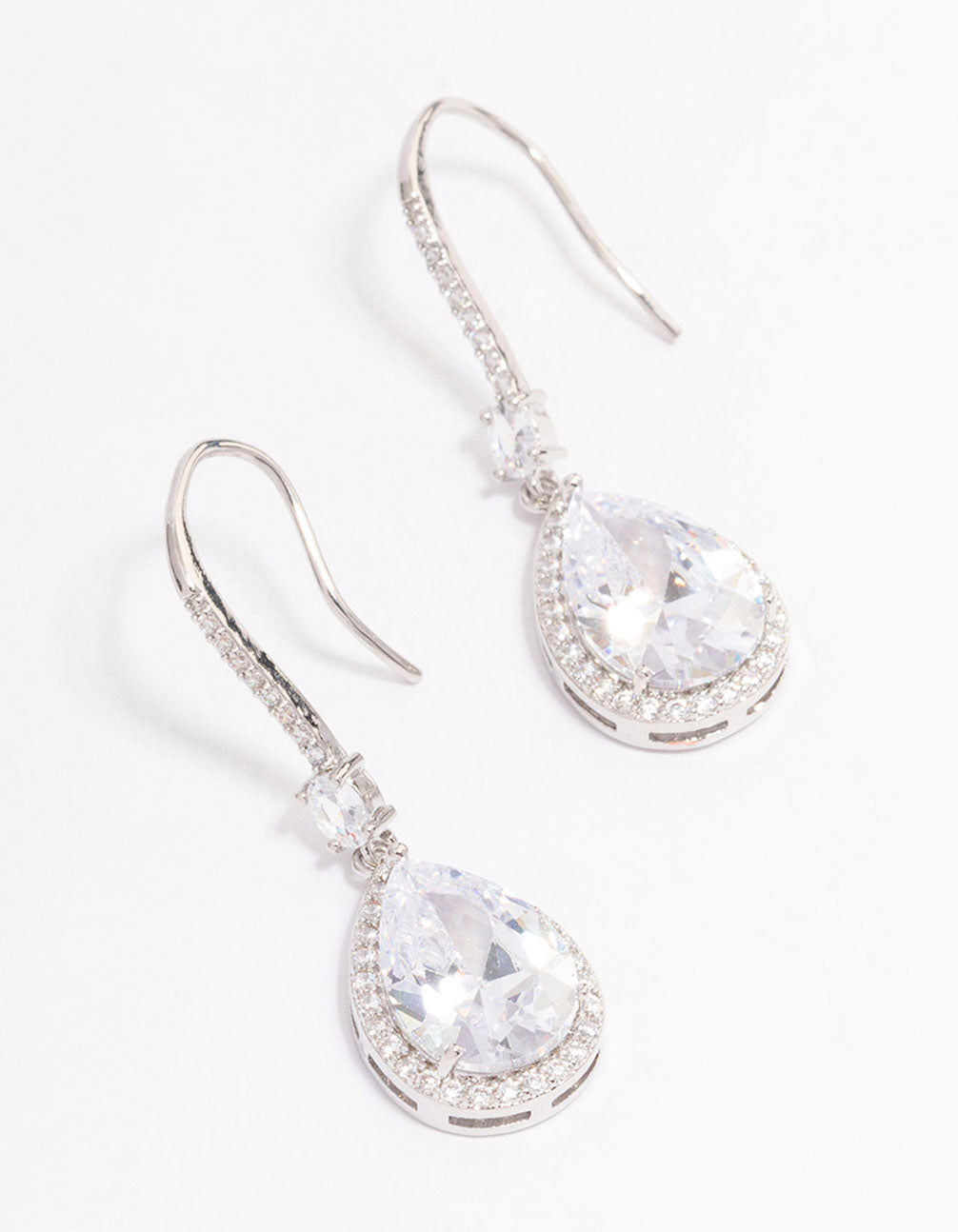 Silver Cubic Zirconia Pear Diamante Hook Drop Earrings