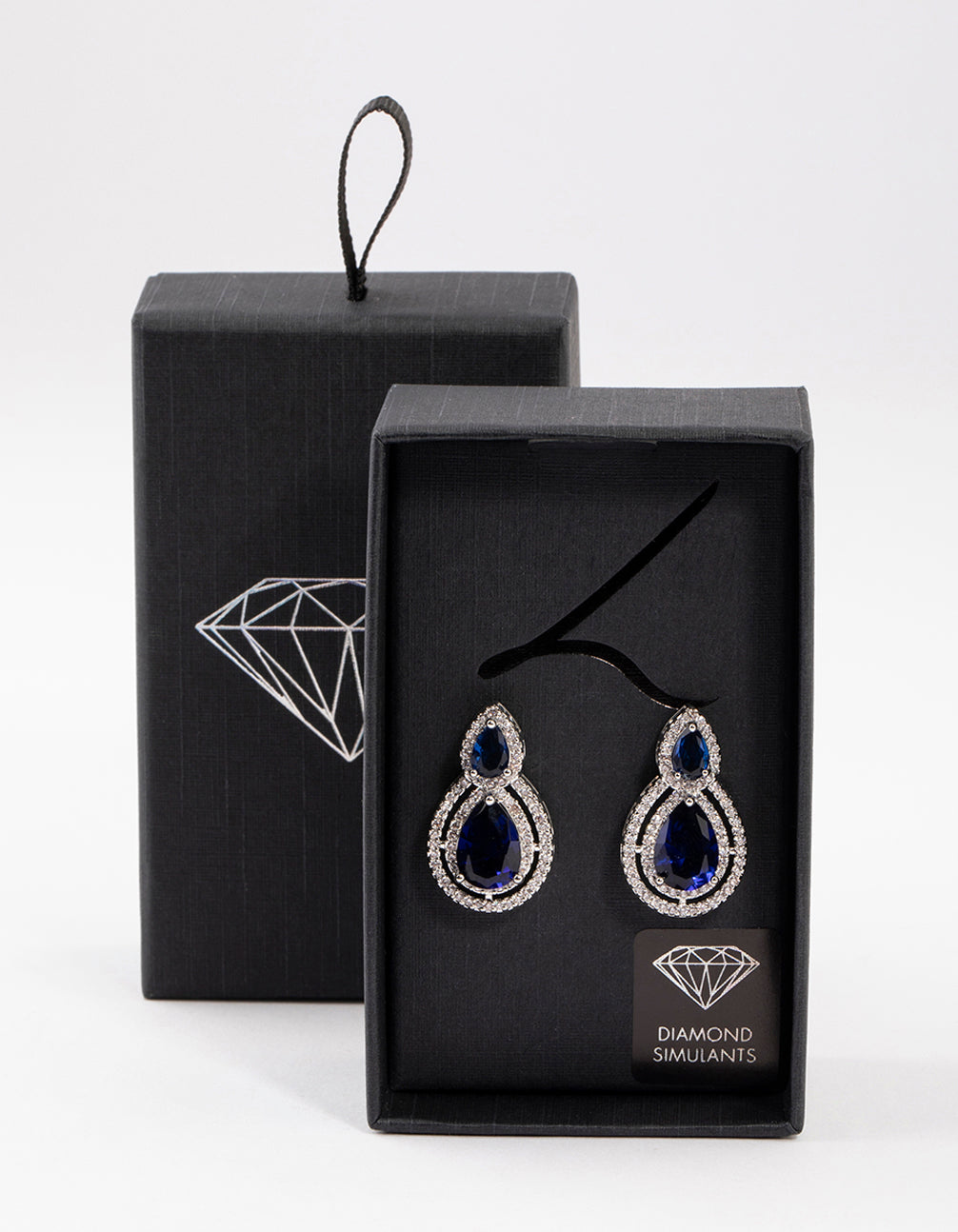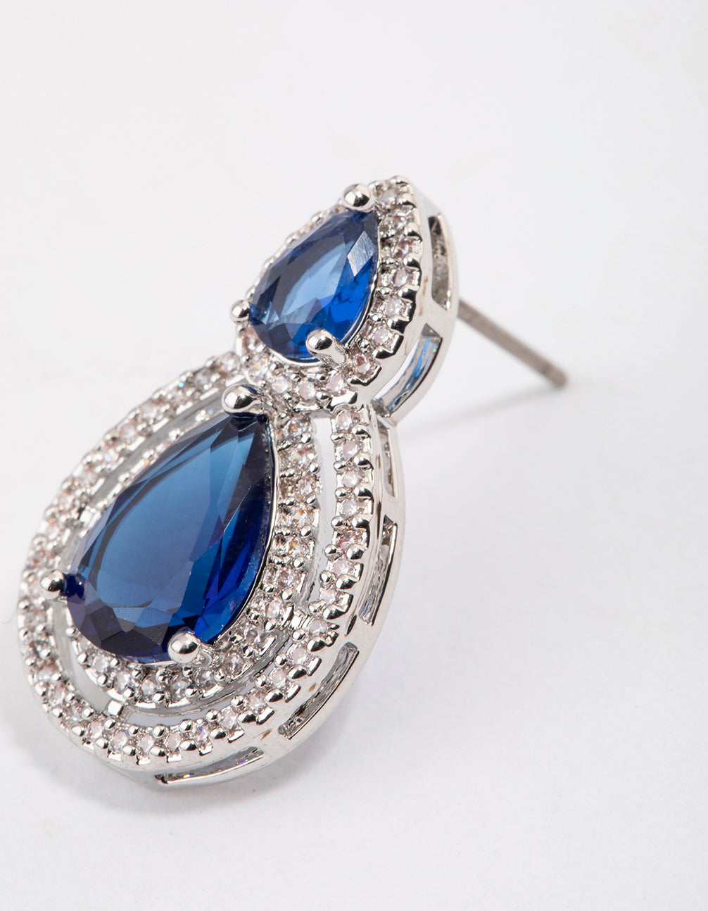 These stunning, silver-toned earrings feature a graduating pear design - with two gorgeous blue stones in the centre.