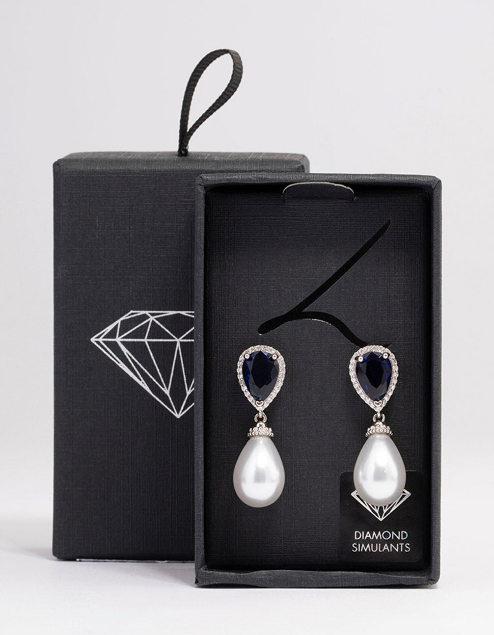 - These sophisticated drop earrings feature a shiny silver setting with blue-coloured crystals and pearls for a stand-out addition to your look.