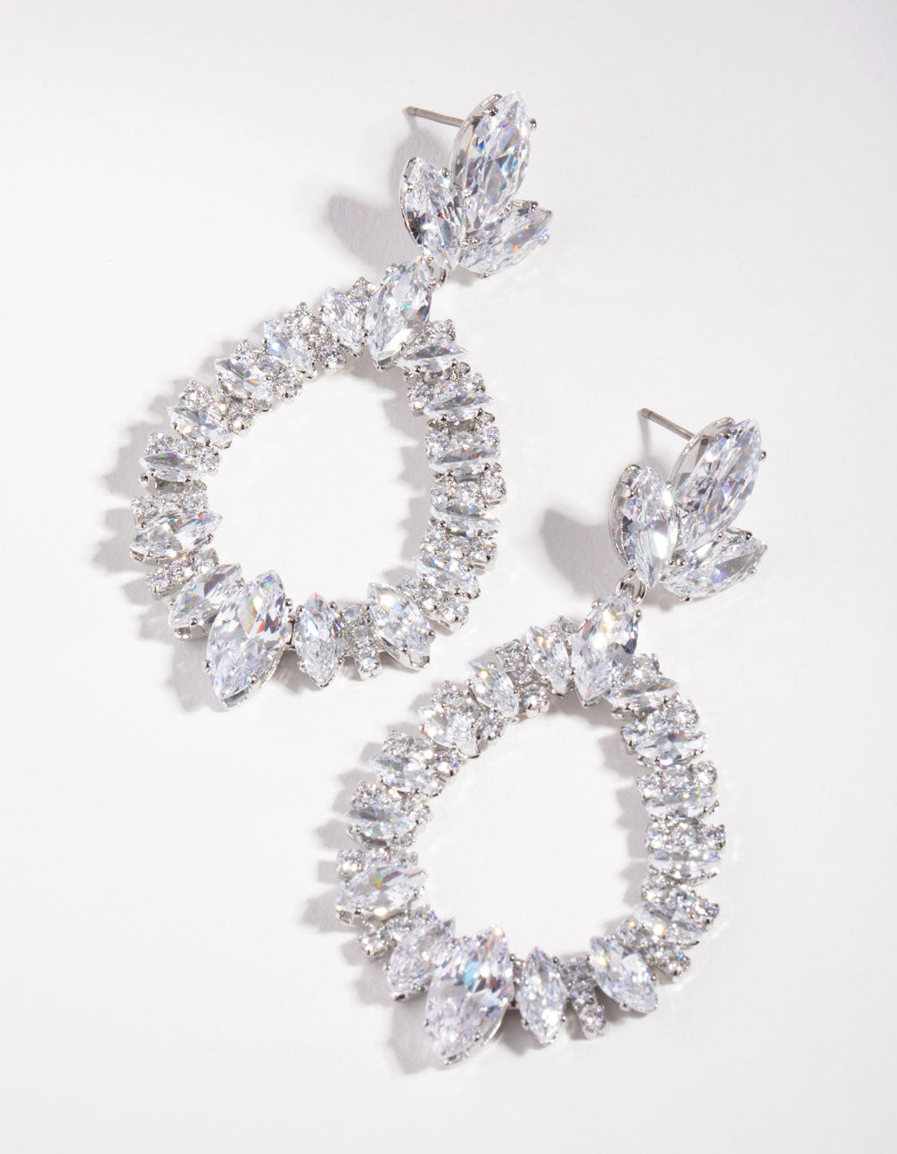 Silver Large Diamante Pear Drop
