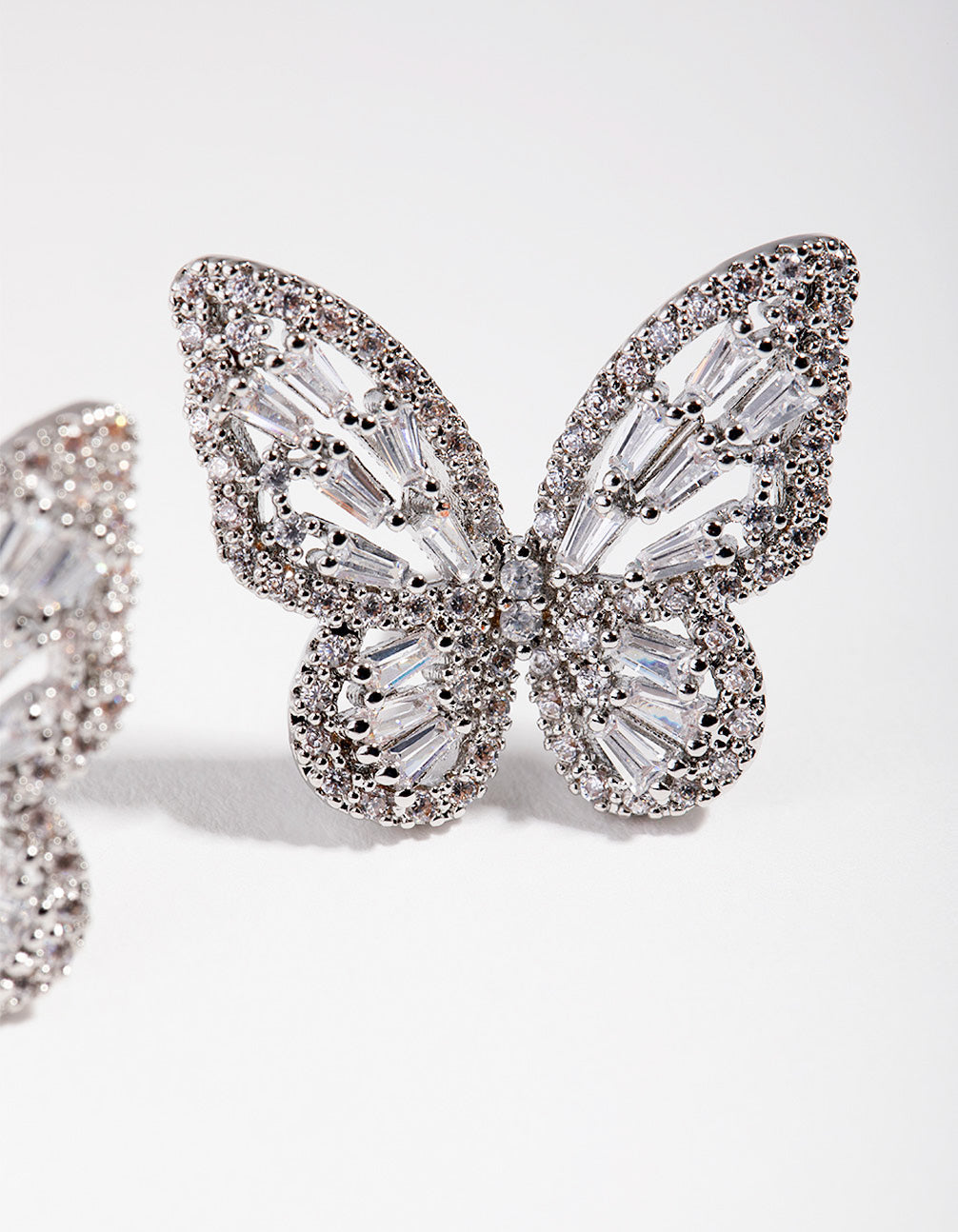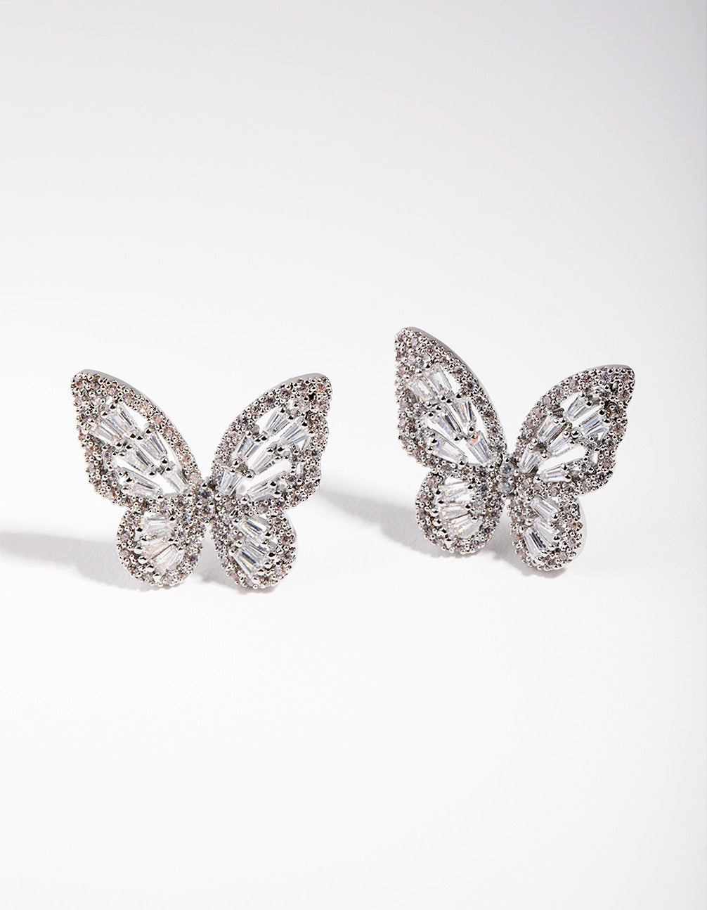 Large Silver Diamond Simulant Butterfly Earrings