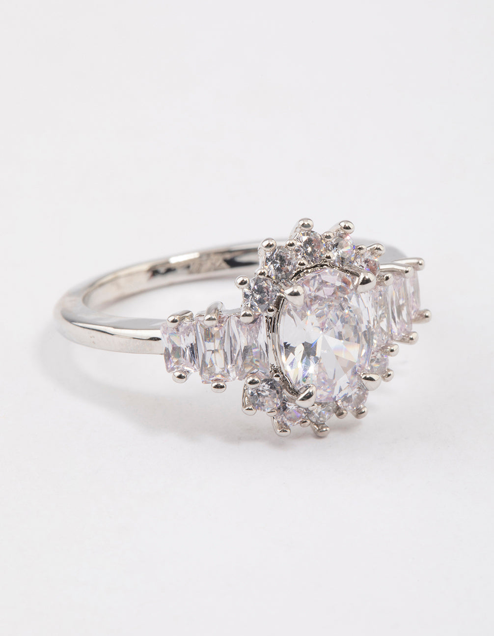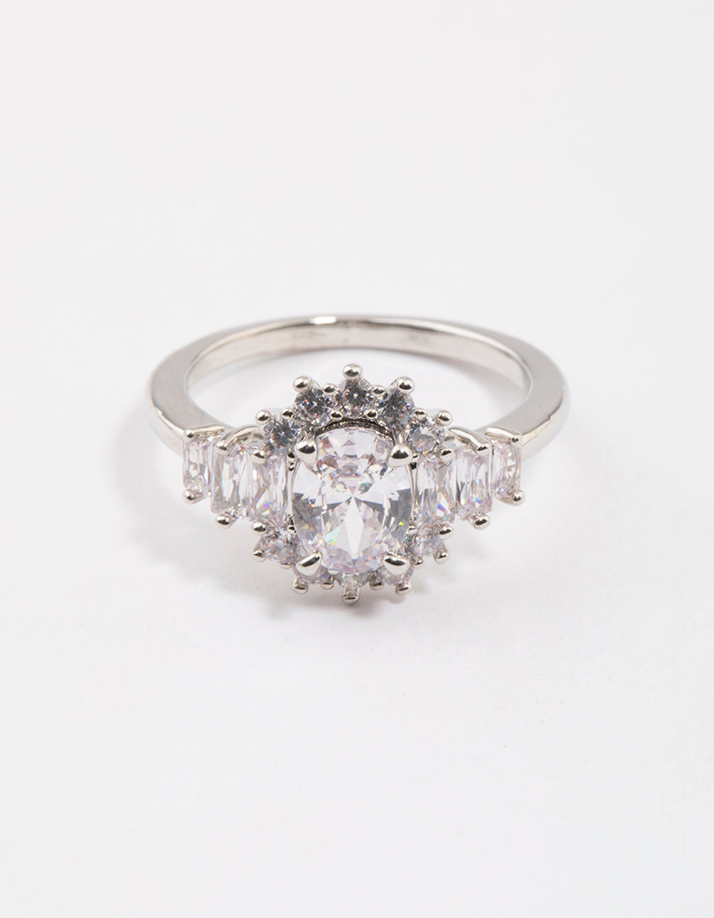 Rhodium Oval & Baguette Cocktail Ring