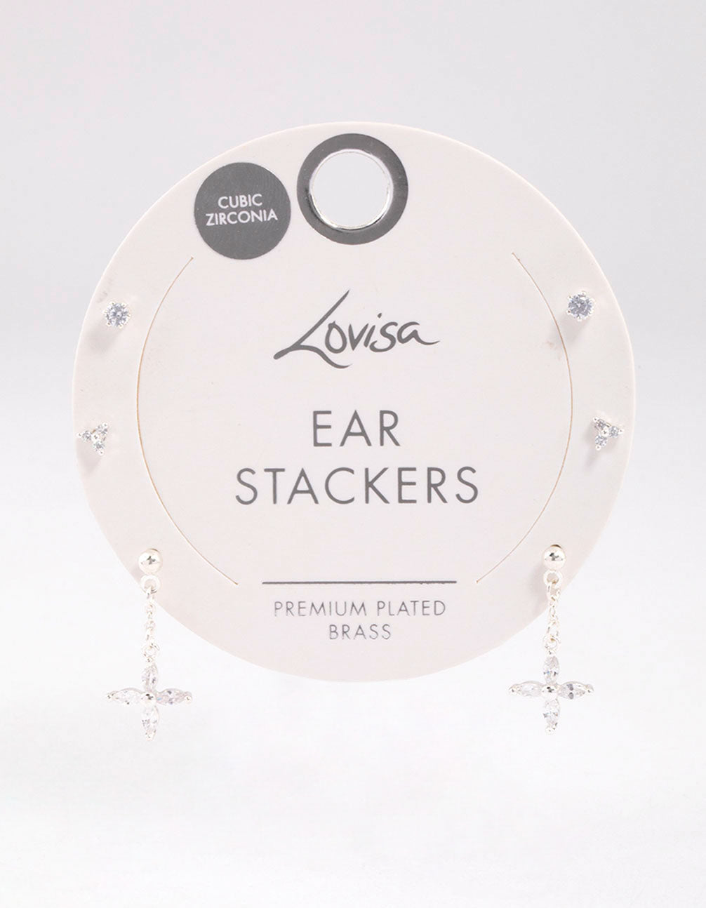 Silver Plated Brass Cubic Zirconia Drop Flower Earring 6-Pack