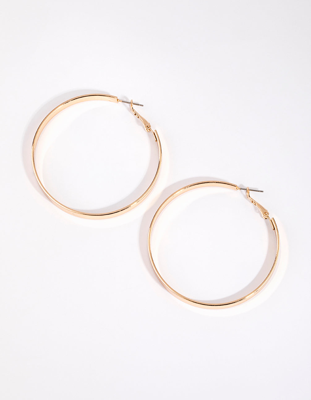 Almost any outfit can be improved with a pair of hoop earrings! These gold-toned hoops feature a classic design. Layer them with gold chains or pearls for a glamorous look.