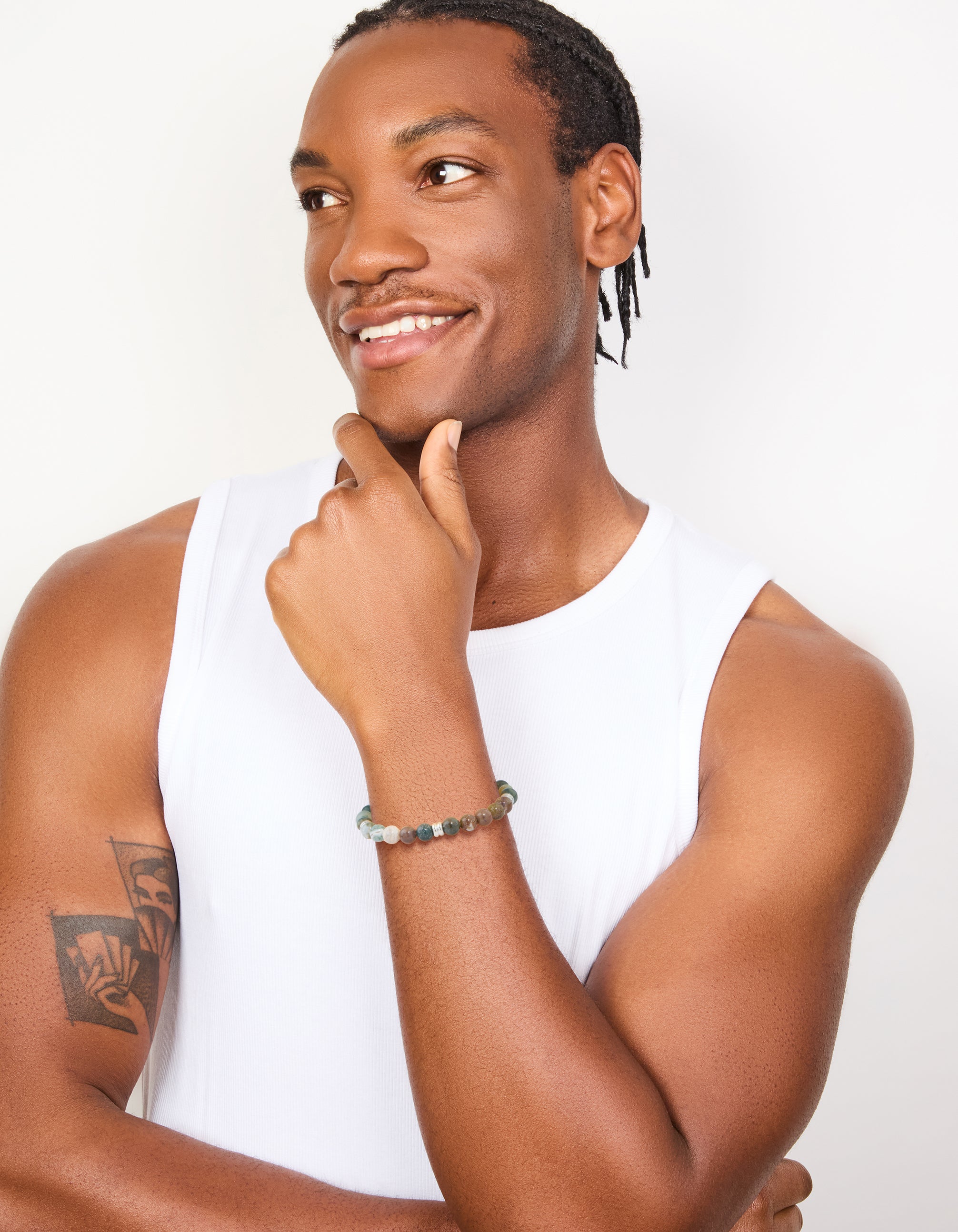Elevate your style with this Waterproof Stainless Steel Semi-Precious Beaded Bracelet. Designed with semi-precious beads and durable stainless steel, this bracelet is built to last and is completely waterproof—ideal for swimming, sweating, or showering without worry. Its masculine edge makes it a versatile accessory, perfect for casual outings, gym sessions, or even a laid-back beach day. Pair it with a leather watch or stack it with other bracelets for a bold, layered look. Whether you're dressing up or keeping it low-key, this bracelet is the ultimate go-to for effortless style. A must-have for any man’s jewellery collection!
