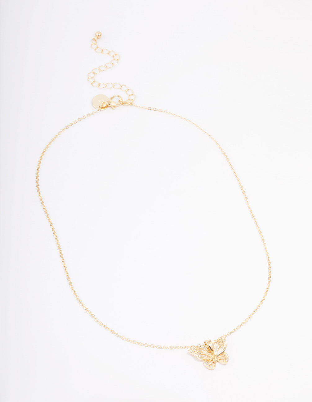 Gold Plated Cubic Zirconia Butterfly Pendant Necklace