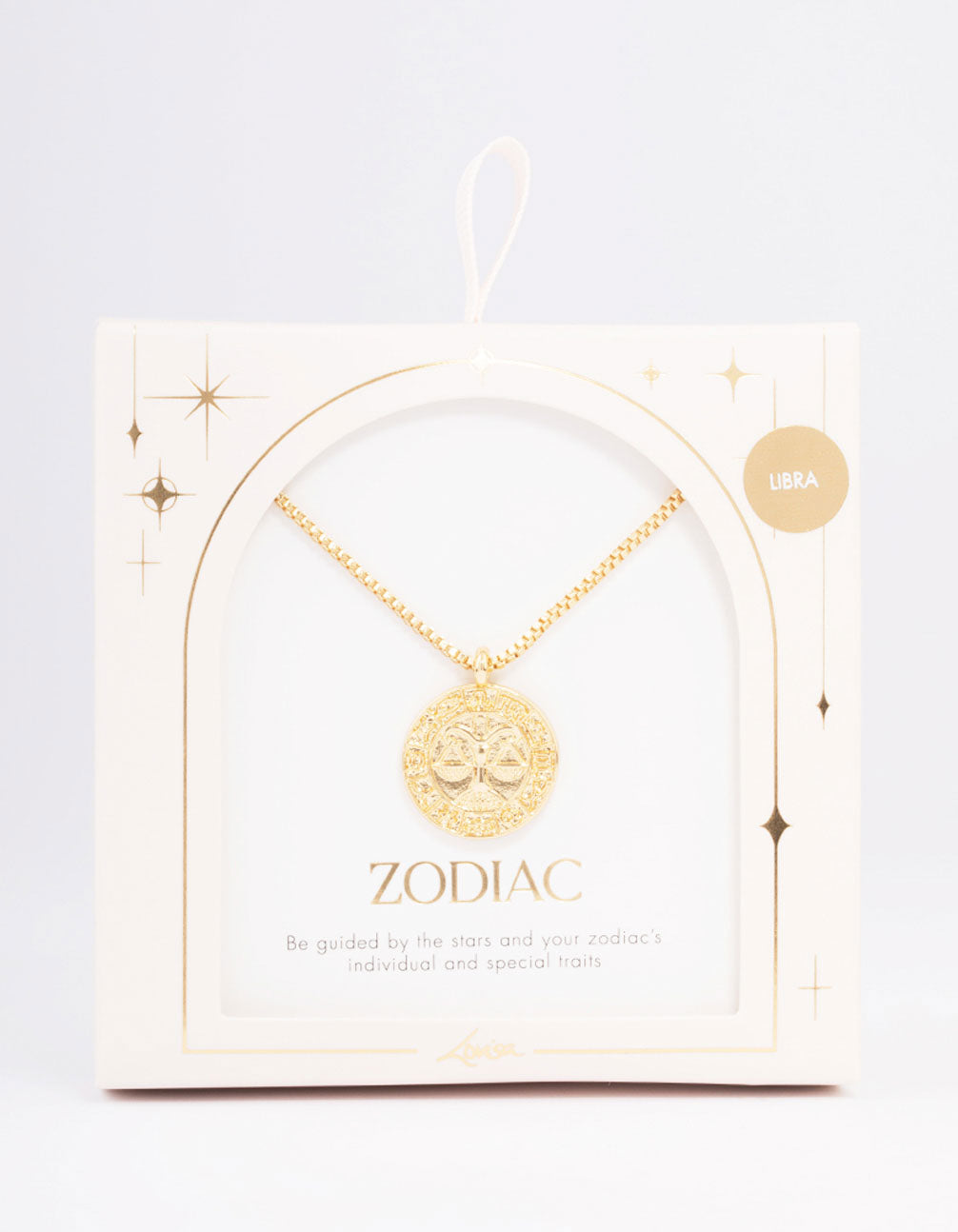 This gift set features a gold plated pendant necklace adorned with a Libra star sign charm, perfect for the astrology lovers in your life!