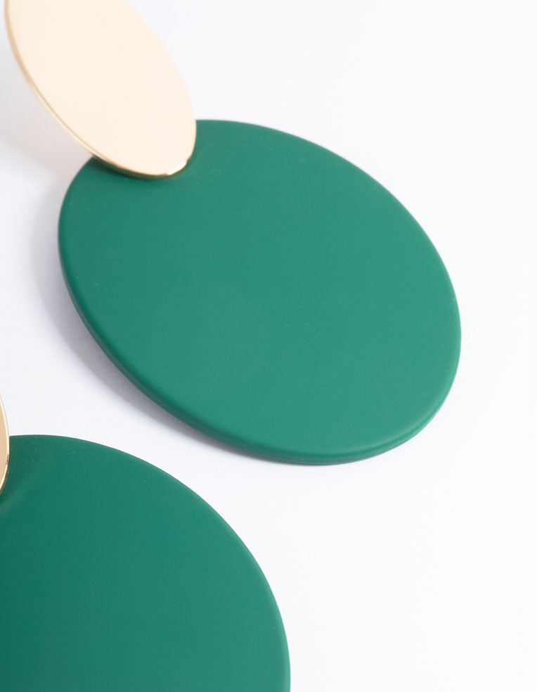 Gold Oval Teal Disc Drop Earrings