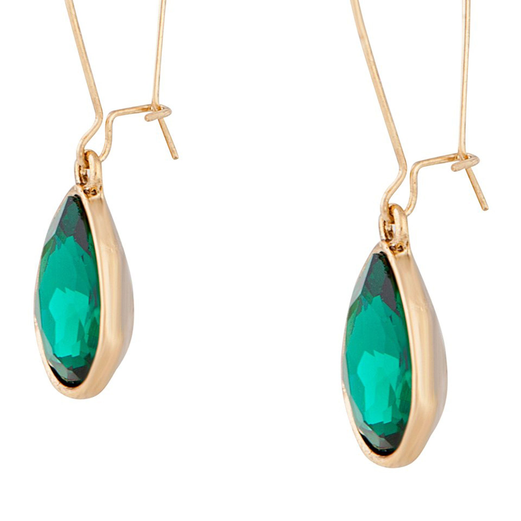 This elegant pair of earrings boast a single emerald-coloured diamante on a gold-toned setting.