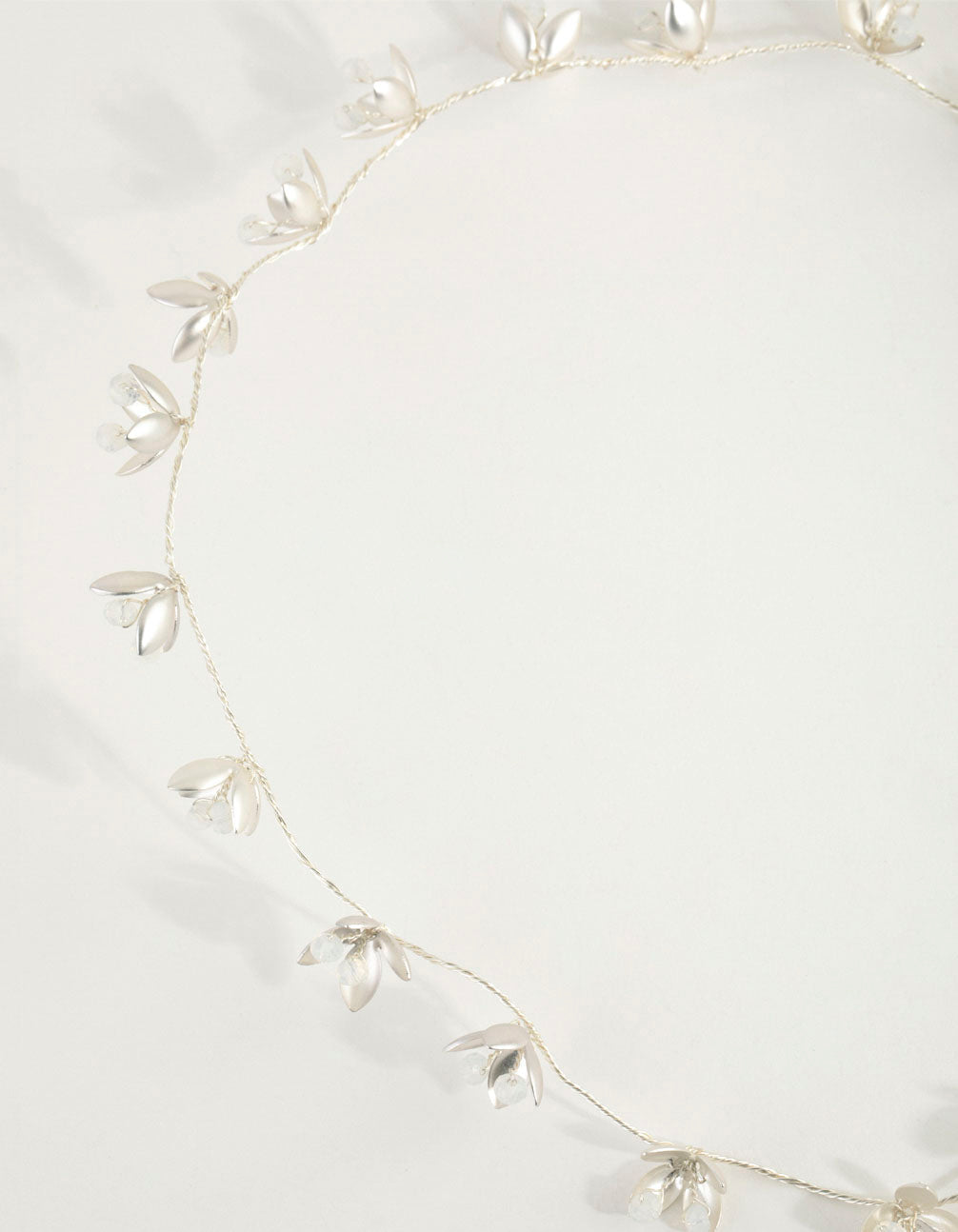 Wear soft statement pieces to complete your look! This beautiful floral halo is silver toned, and features a metal flower design with beaded details. Wear this pretty piece to add a finishing touch to formal wear.