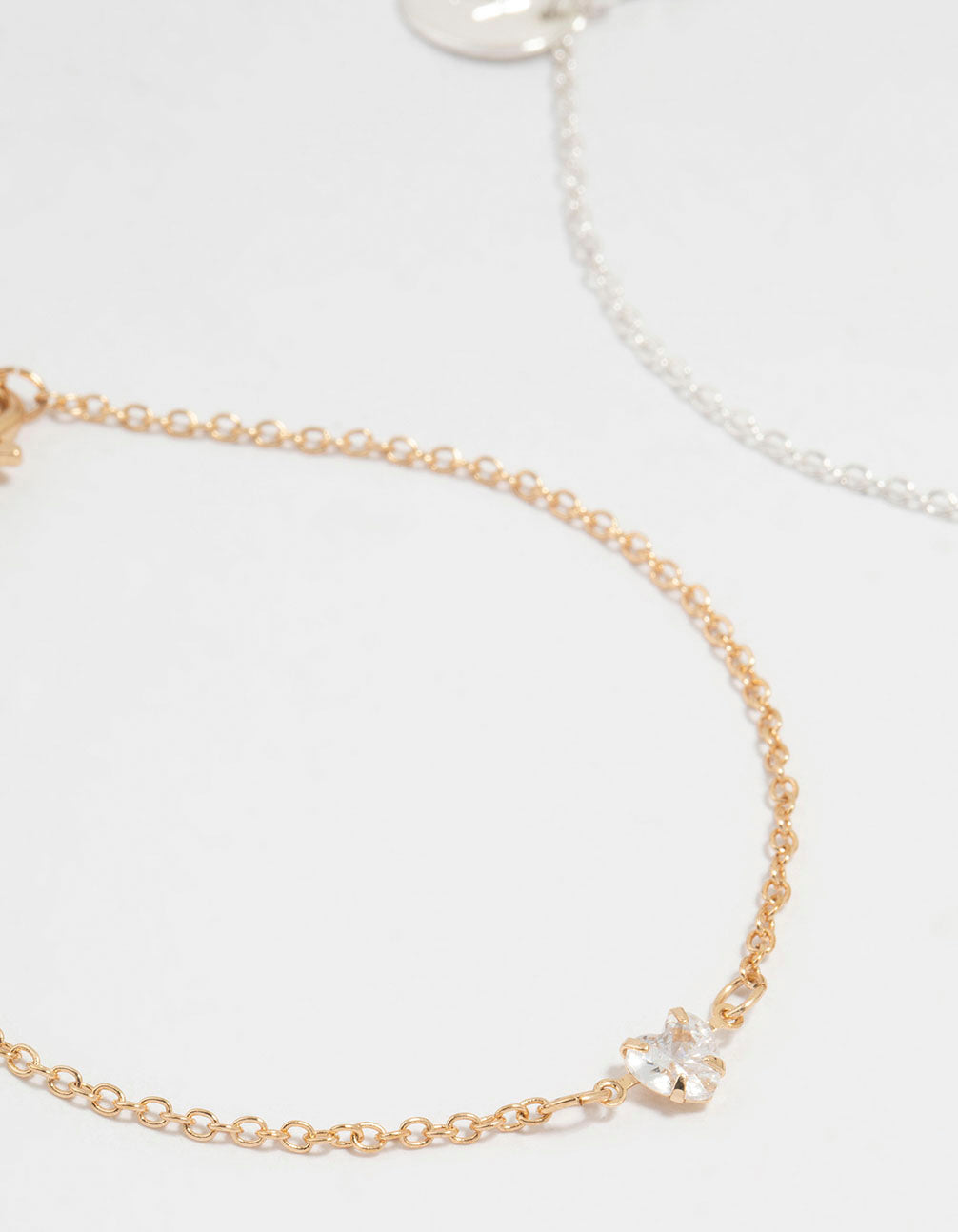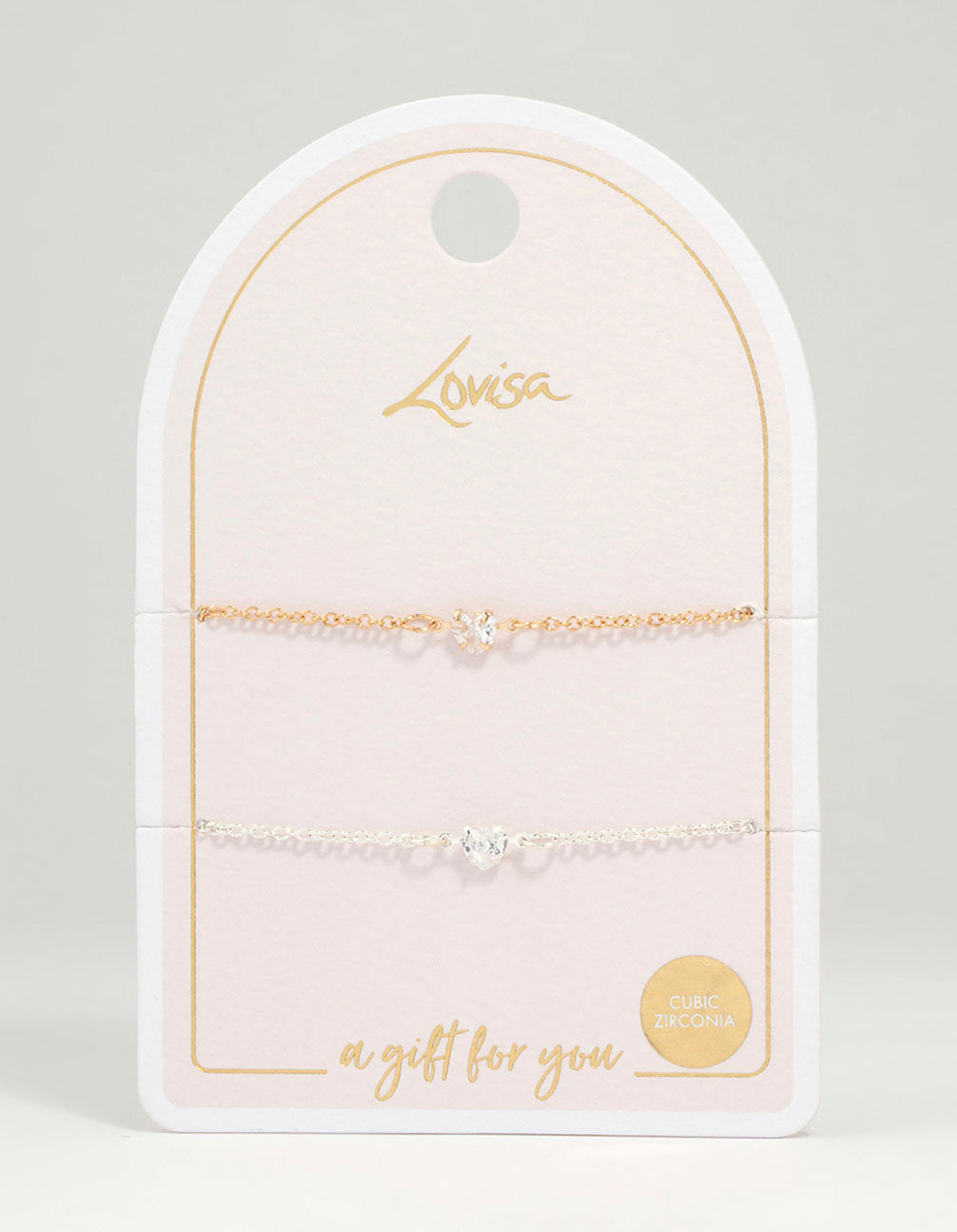 Mixed Metal Cubic Zirconia Heart Bracelets 2-Pack