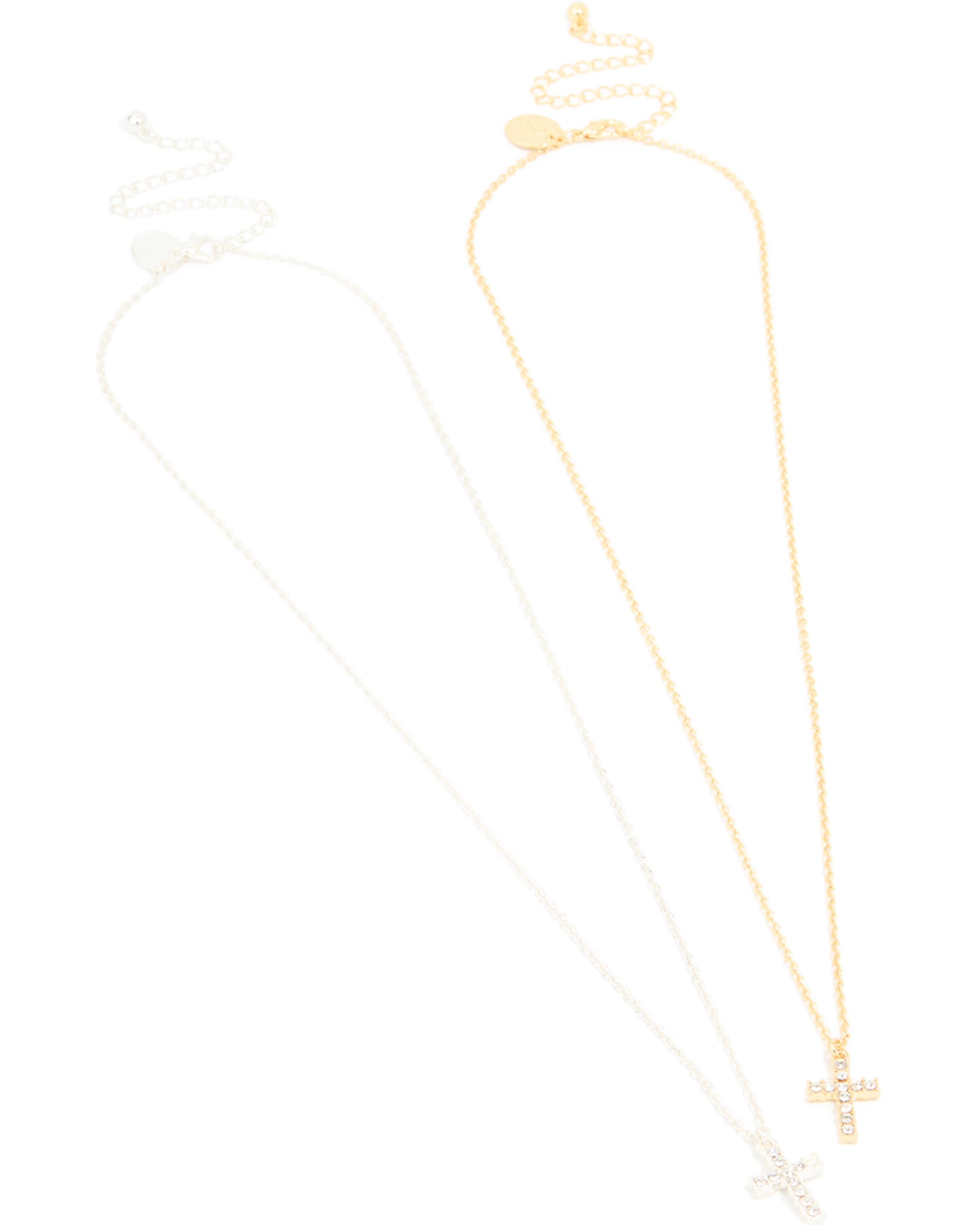 Mixed Metal Diamante Cross Necklaces 2-Pack