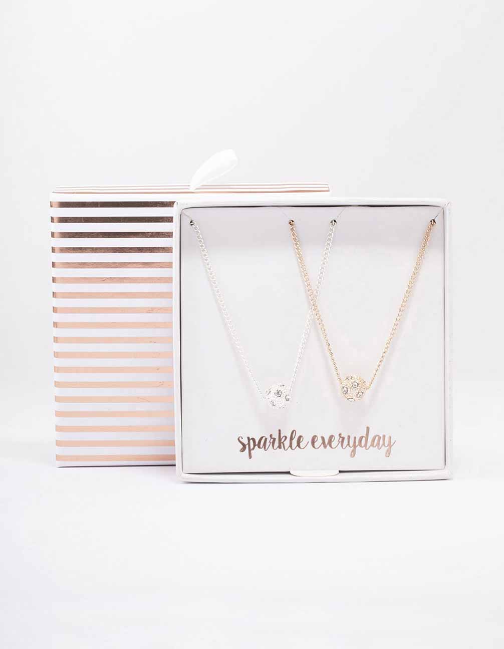 Make a lasting impression with jewellery from the Lovisa Gifting Collection. Discover our wide selection of gift-ready jewellery, ready to wow your loved ones. This gift set contains two individual necklaces adorned with round, diamante pendants for a hint of glamour.