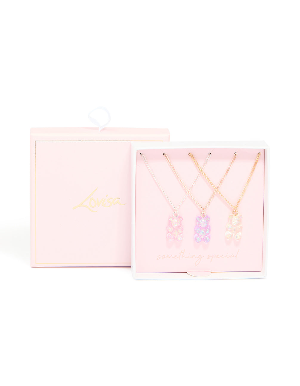Mixed Metal Holographic Teddy Bear Necklaces 3-Pack