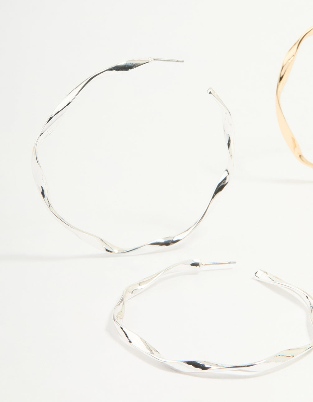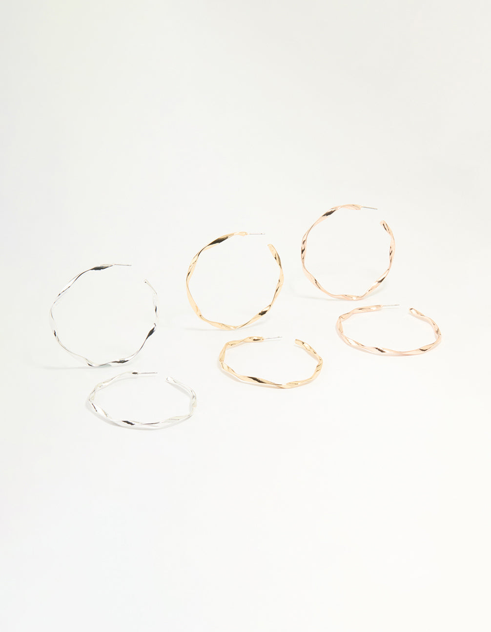 Add a touch of effortless glamour to your look with this Mixed Metal Twisted Large Hoop Earrings Pack. This stunning set of hoop earrings features three pairs in a mix of metallic finishes, including sleek gold and silver tones, all with a chic twisted design that adds texture and dimension. Perfect for lovers of statement jewellery, these large hoops are versatile enough to wear with anything—from casual outfits like jeans and a jumper to evening looks that call for a bold accessory. Whether you're heading to brunch with friends or dancing the night away, these lightweight earrings are your go-to for adding instant style. Ideal for layering with smaller hoops or wearing solo for maximum impact, they're an absolute jewellery box must-have!
