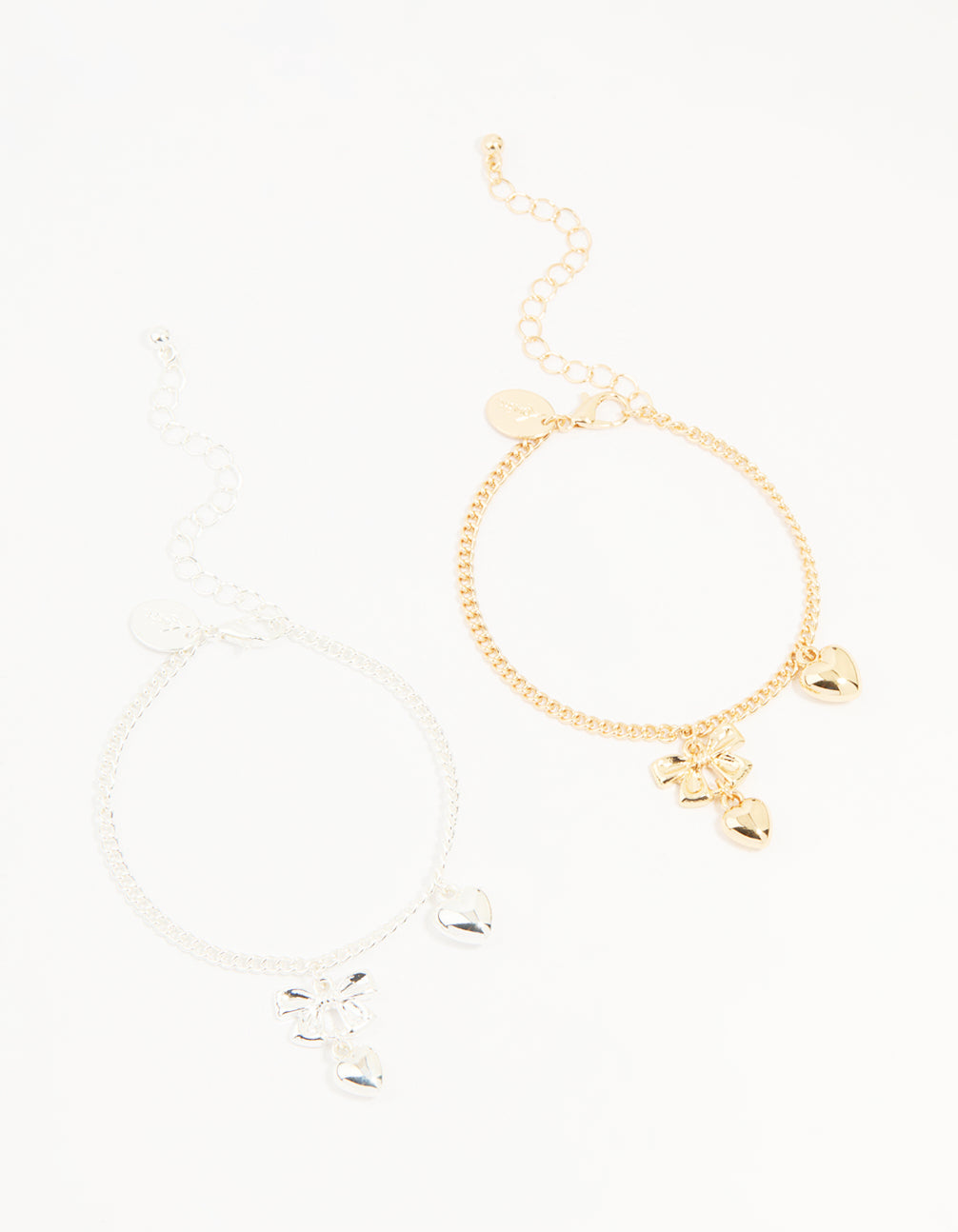 Mixed Metals Bow & Heart Bracelets 2-Pack