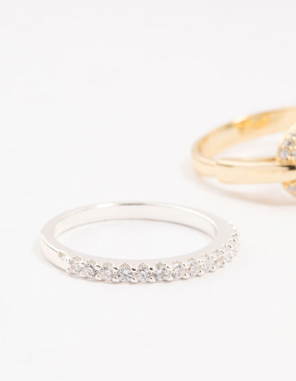 Add some bling with this stunning mixed metals ring pack. Crafted from premium silver and gold-plated metals with sparkling cubic zirconia detailing, choose between a pave set band or a sparkly paperclip design to add instant glam to your look.
