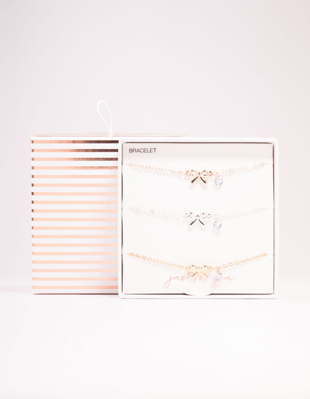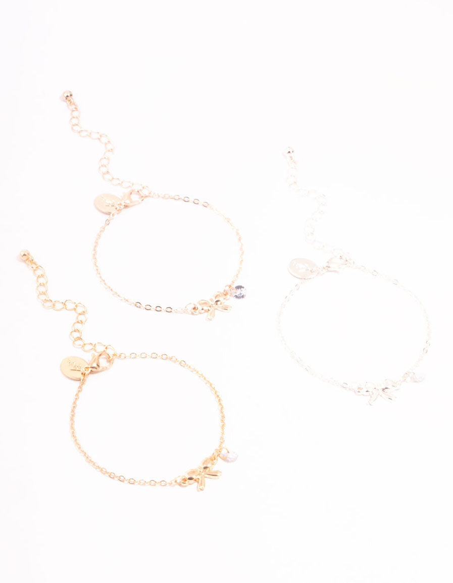Mixed Metals Diamante Bow Bracelets 3-Pack