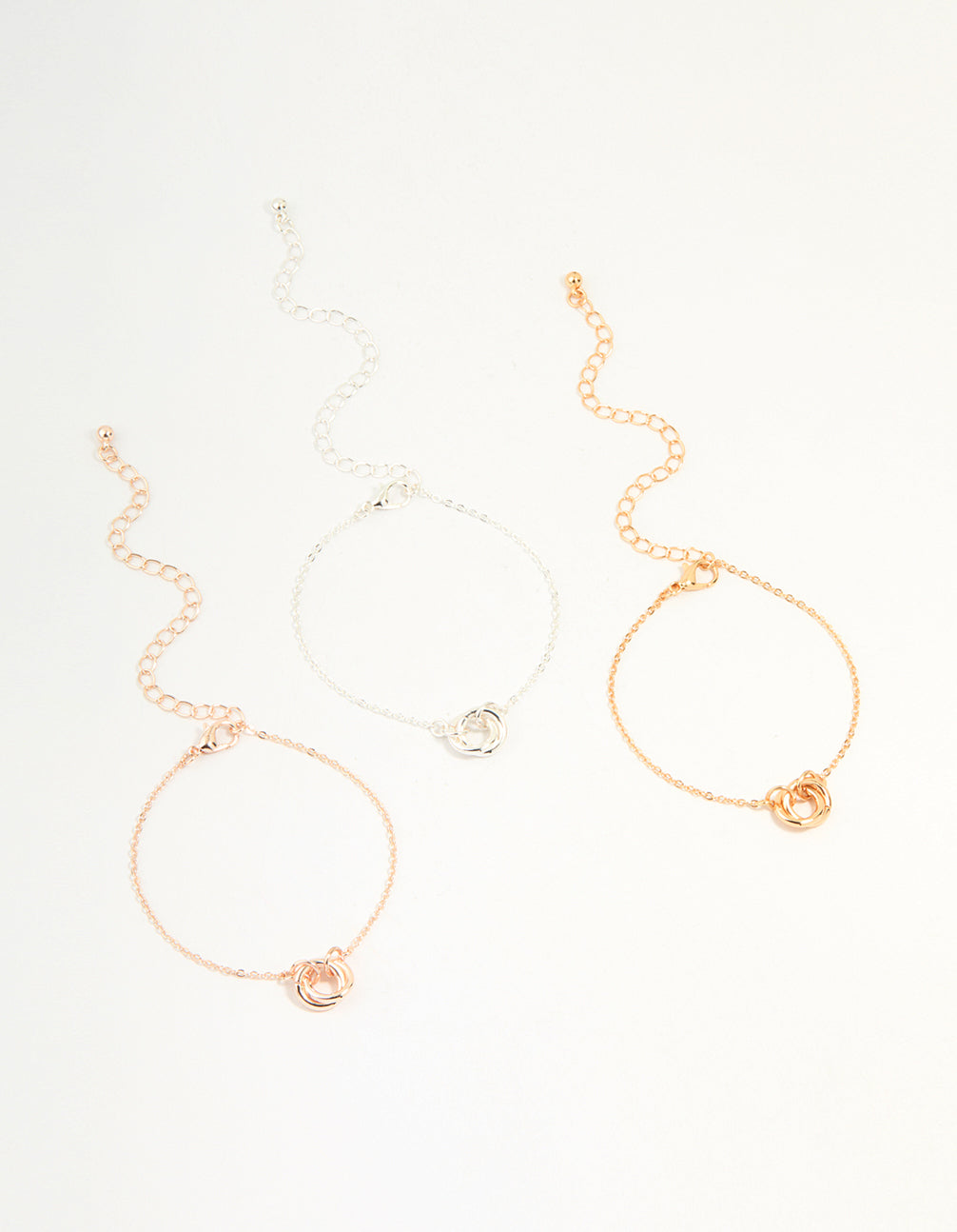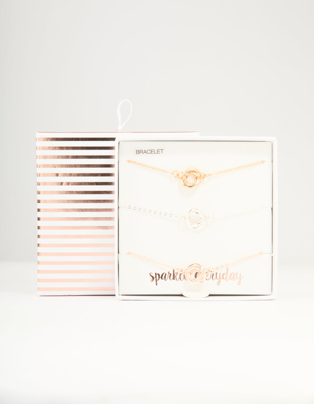 Mixed Metals Diamante Linked Circle Bracelets 3-Pack