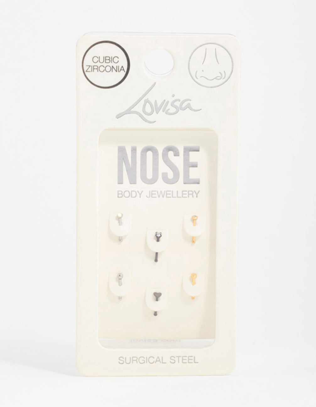 Upgrade your nose bling! This stunning 6-pack features surgical steel nose studs in heart and cubic zirconia designs with mixed metal finishes. Hypoallergenic and durable, they add a glamorous touch to any outfit.