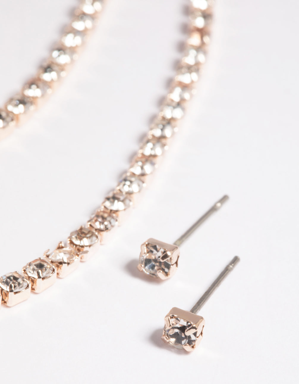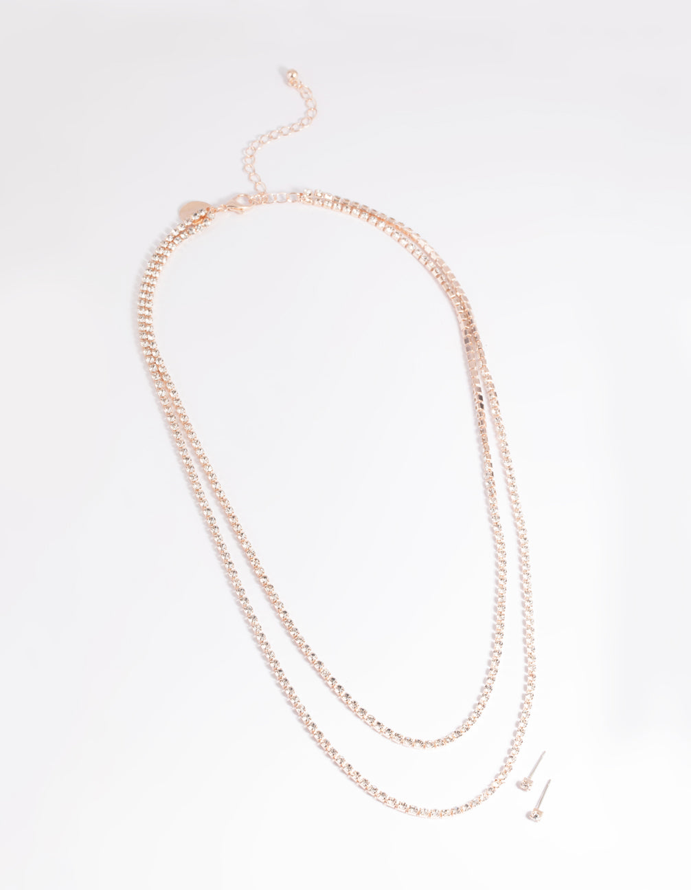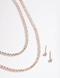 Rose Gold Diamante Layered Necklace & Earrings Set