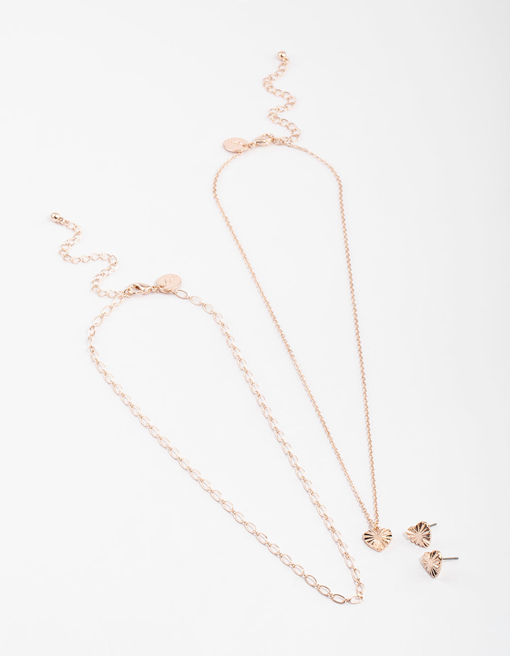 Rose Gold Heart Rays Layered Necklace & Earrings Set