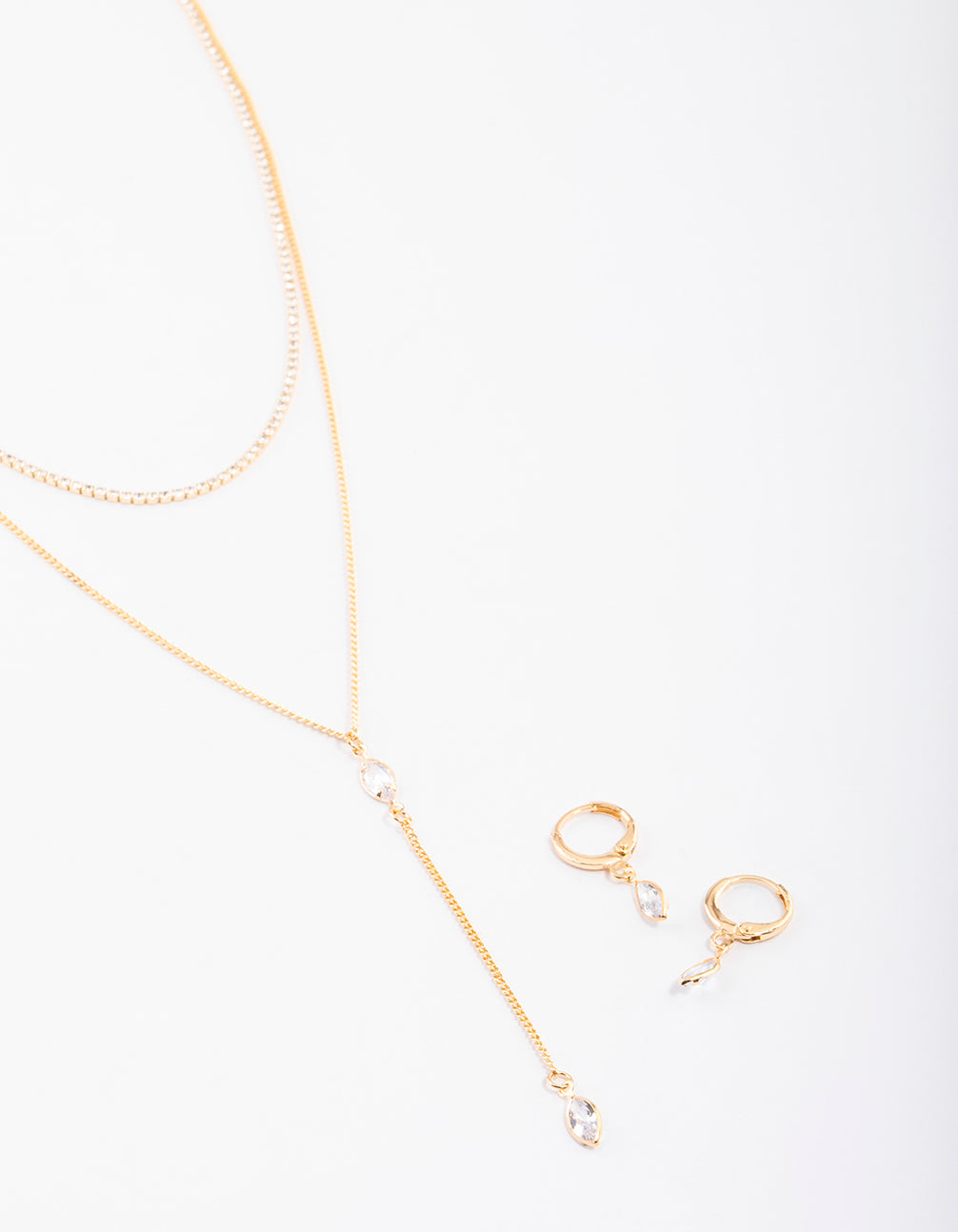 Gold Layered Y-Neck Necklace & Earrings Jewellery Set