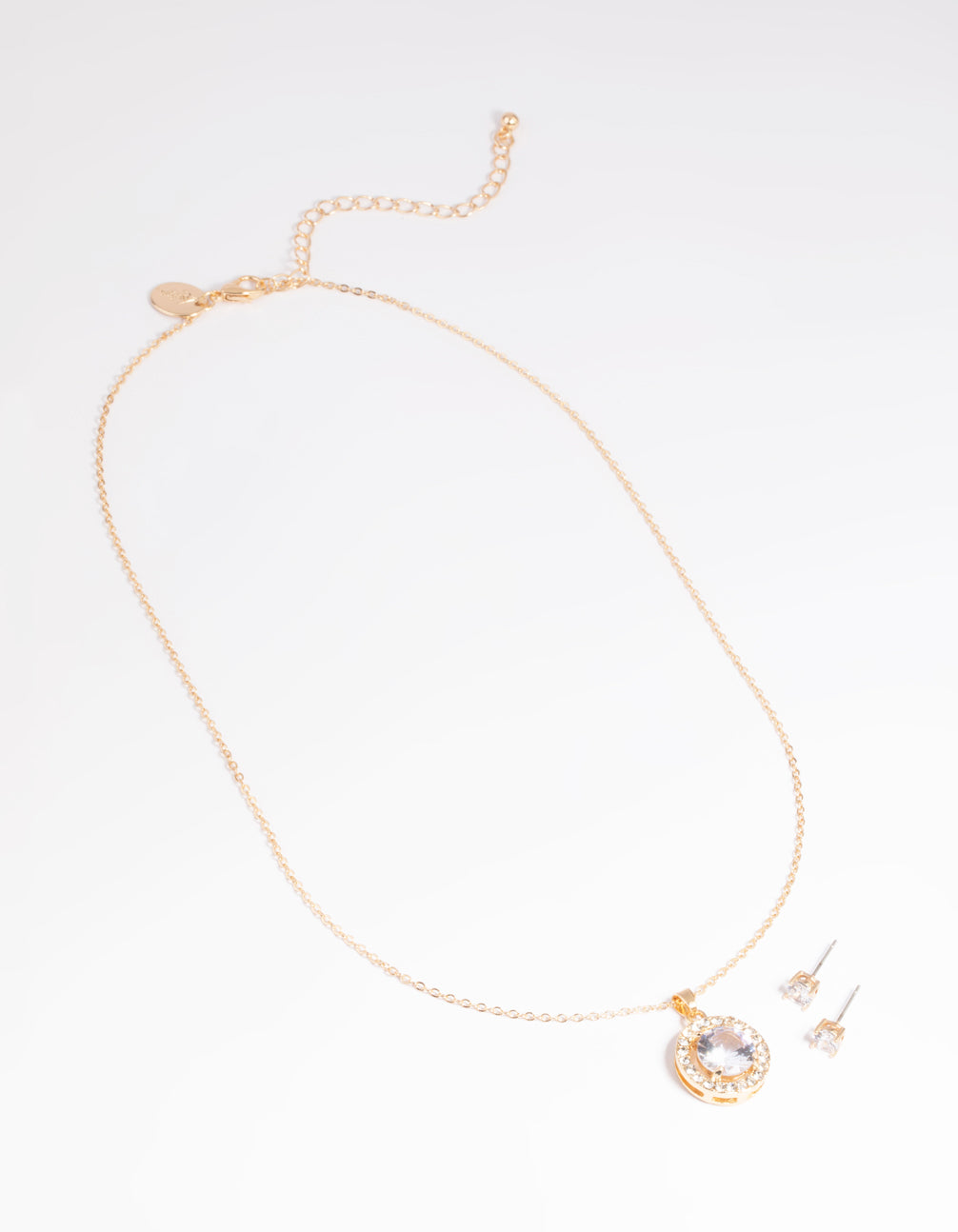 • Gold Diamante Stone Necklace & Earrings Set - link has visual effect only