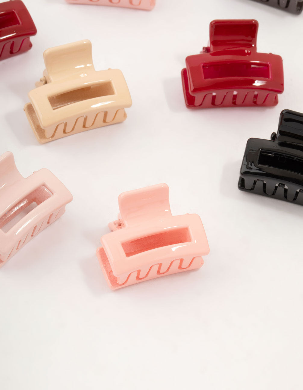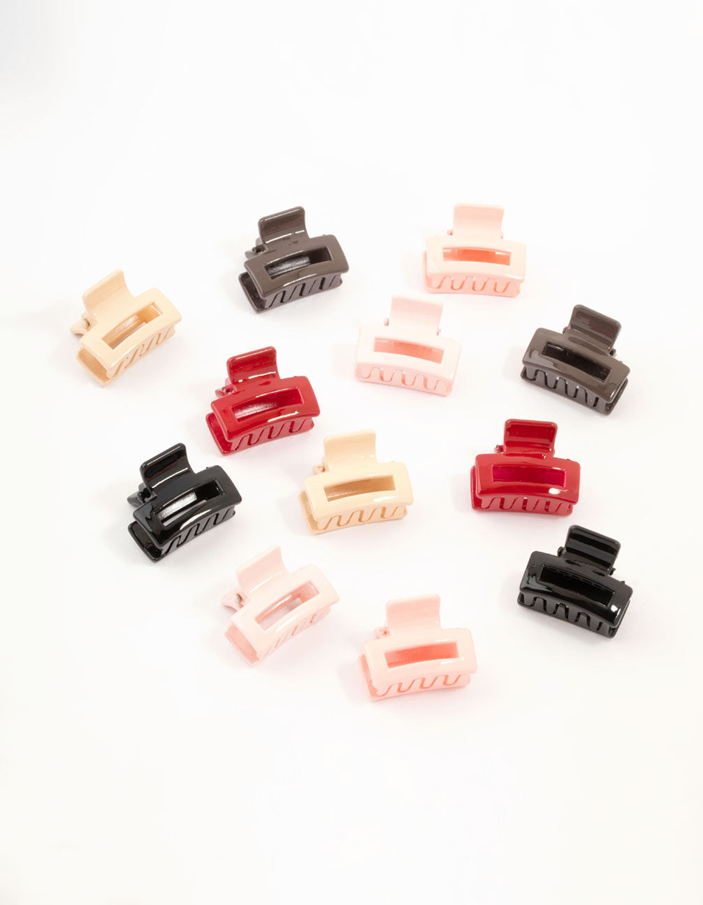 • Multicoloured Open Mini Rectangle Claw Clips 12-Pack - link has visual effect only