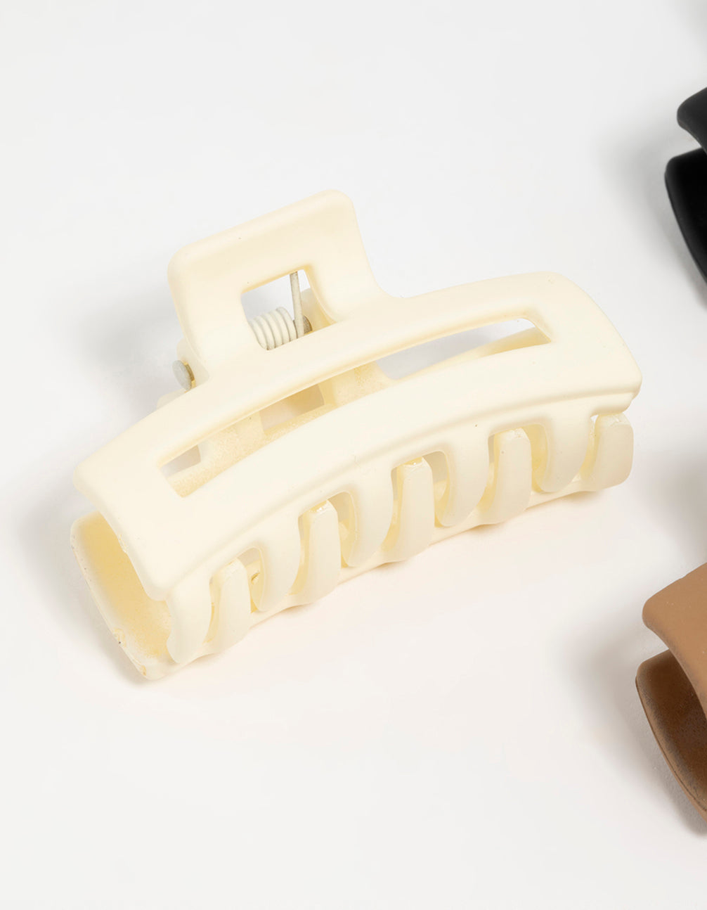 Effortless style meets everyday practicality with this Neutral Small Rectangle Claw Clips Pack. These chic hair accessories are designed in a sleek rectangle shape, perfect for securing your strands with ease. Whether you're pinning back flyaways or creating a stylish half-up hairstyle, these claw clips are a must-have for your hair essentials collection. Ideal for casual outings, workdays, or low-key weekends, their neutral tones make them easy to pair with anything – from relaxed loungewear to sharp office looks. Compact yet sturdy, they're perfect for keeping in your bag for on-the-go touch-ups. Style meets function with these versatile clips!