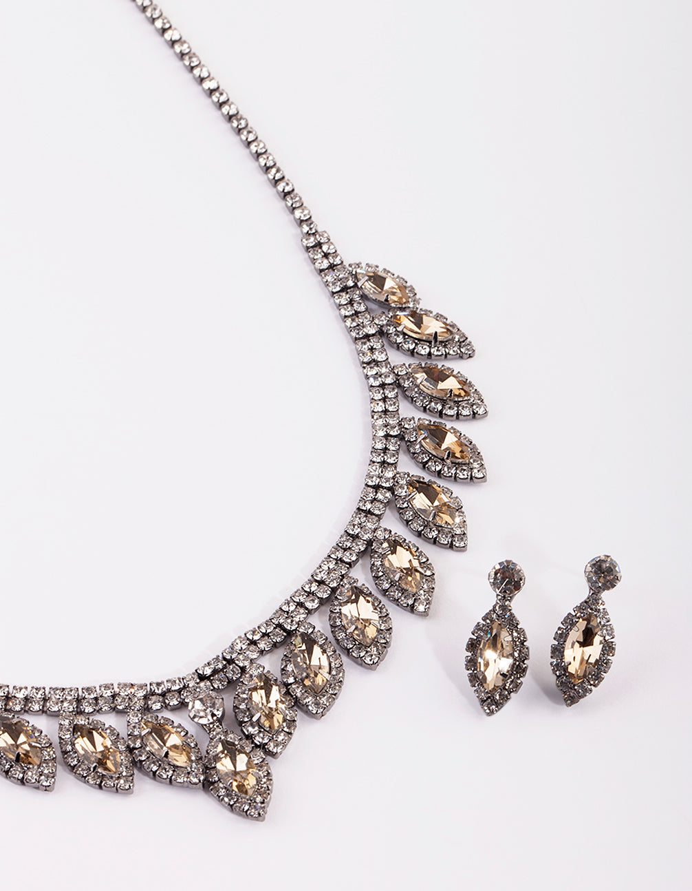 Gunmetal Marquise Diamante Necklace & Earrings Set Gunmetal Marquise Diamante Necklace & Earrings Set Gunmetal Marquise Diamante Necklace & Earrings Set