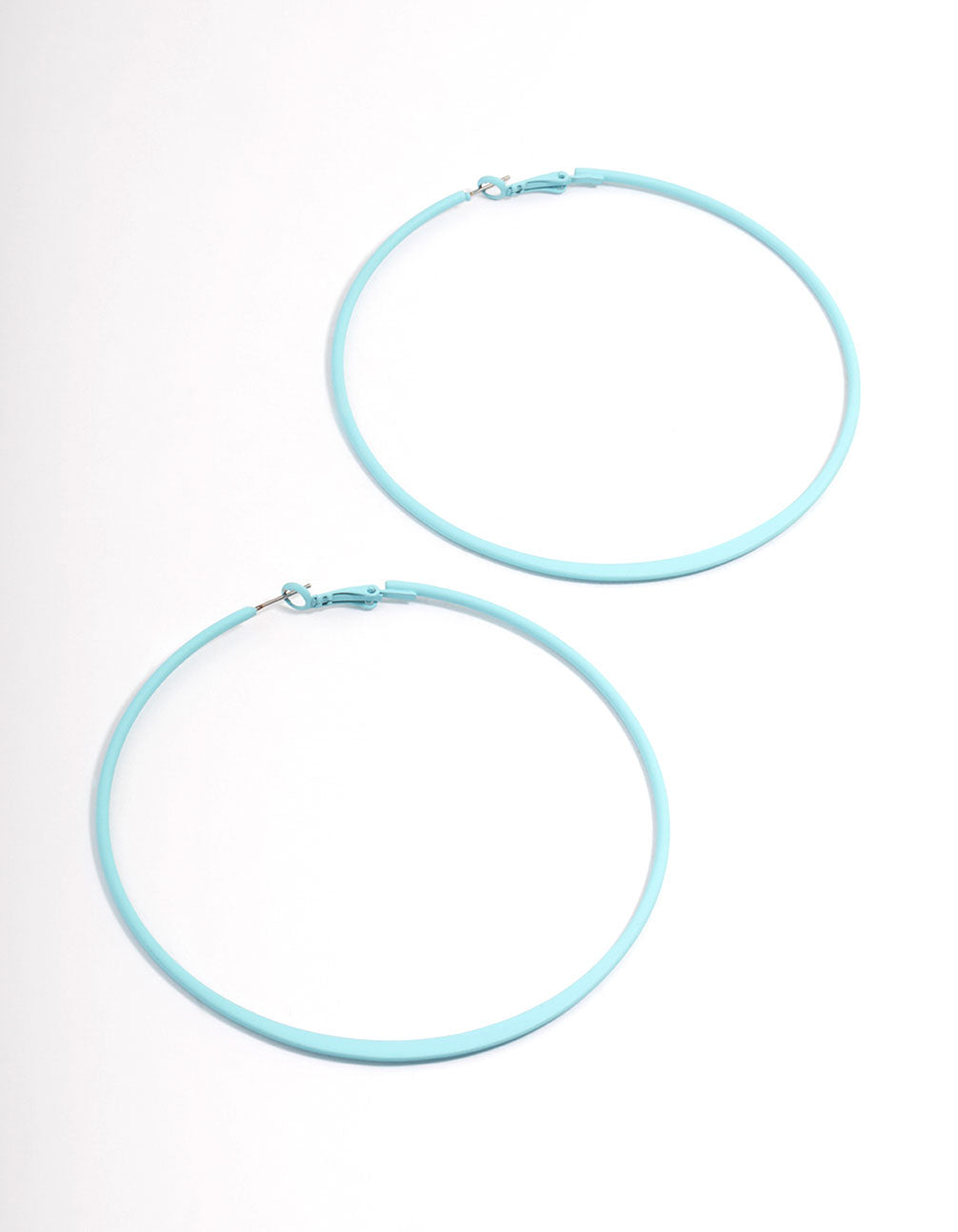 Blue Coated Felt Edge Hoop Earrings 9cm