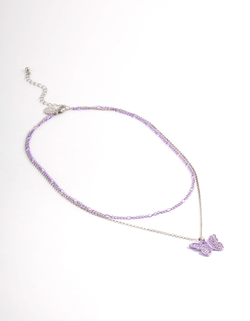 - Style this purple, layered butterfly necklace with a matching pair of huggie hoop earrings from our Butterfly Trend Edit.