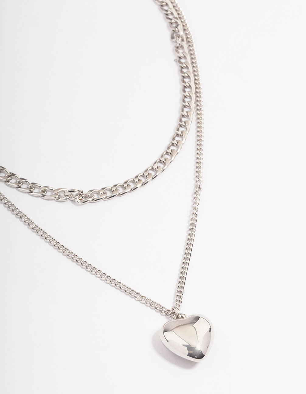 Style this silver-toned, puffy heart necklace with a matching pair of silver puffy heart drop earrings for a fashionable look.