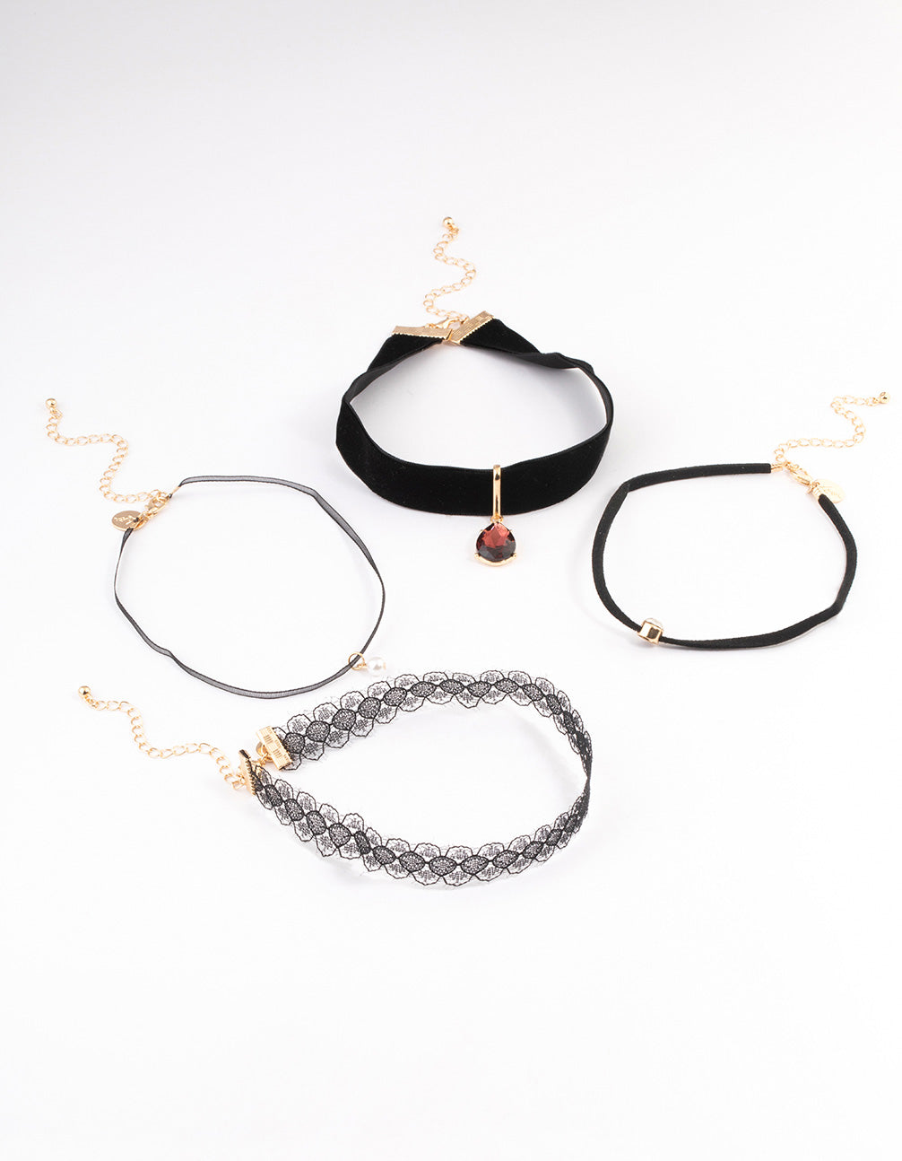 Strive for opulence with pieces from our glamorous, Opulent Jewels Collection! This 4-pack of Gold Lace Teardrop Choker Necklaces adds a touch of elegance to any outfit, with delicate lace detailing and teardrop-shaped pendants.