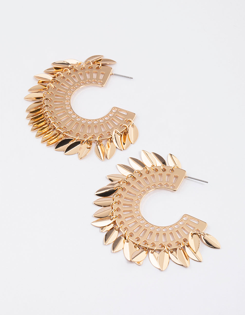 Strive for opulence with pieces from our glamorous, Opulent Jewels Collection! These gold-toned hoop earrings feature a patterned, chunky silhouette and charms for a textured look.