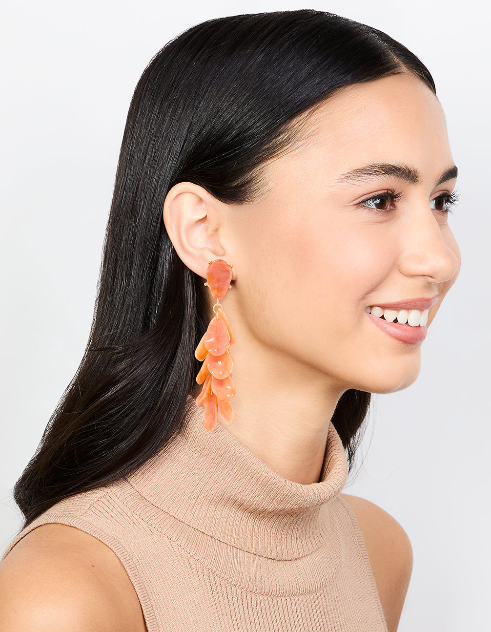 Orange Acrylic Petal Cluster Drop Earrings