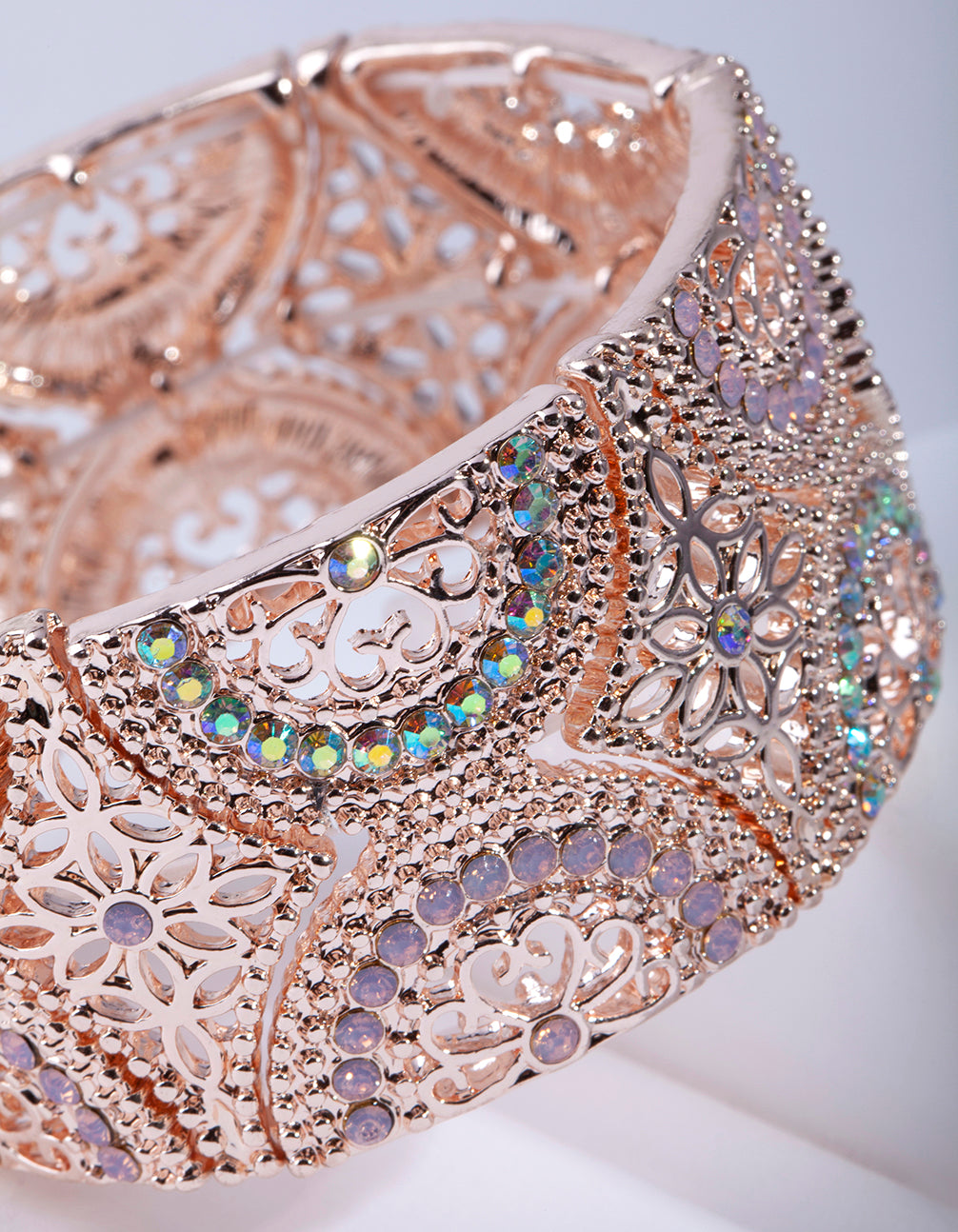 Create the ultimate wrist-stack with a fashion bracelet! This style boasts a rose-gold-toned setting with diamante embellishments. The stretch design means up-styling your outfit is as simple as sliding on this stunning piece. Wear individually, stacked or mix and match for an eclectic look!