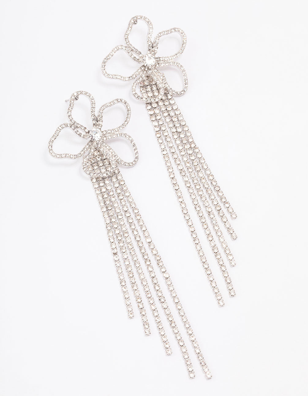 Discover our collection of event and party ready pieces, including these Silver Flower Cup Chain Drop Earrings.