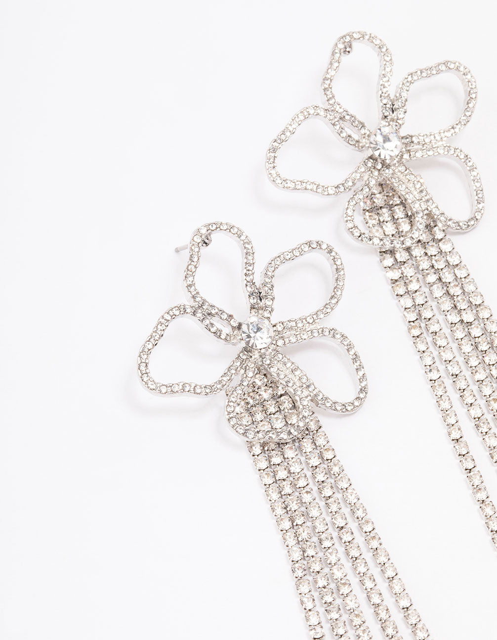 These drop earrings feature a collection of cascading diamantes adorned with dazzling florals at the top.