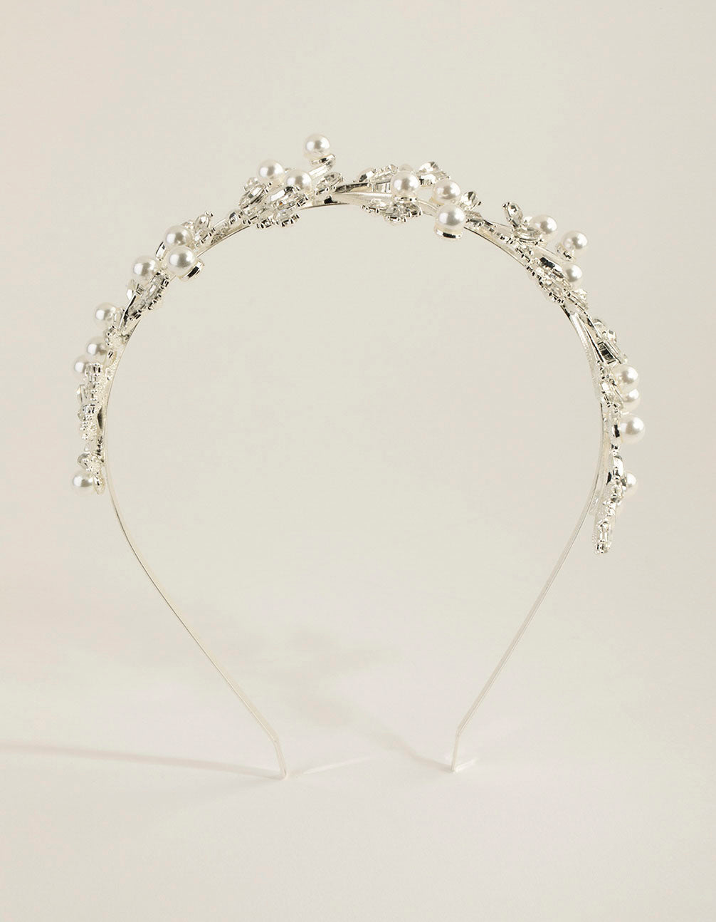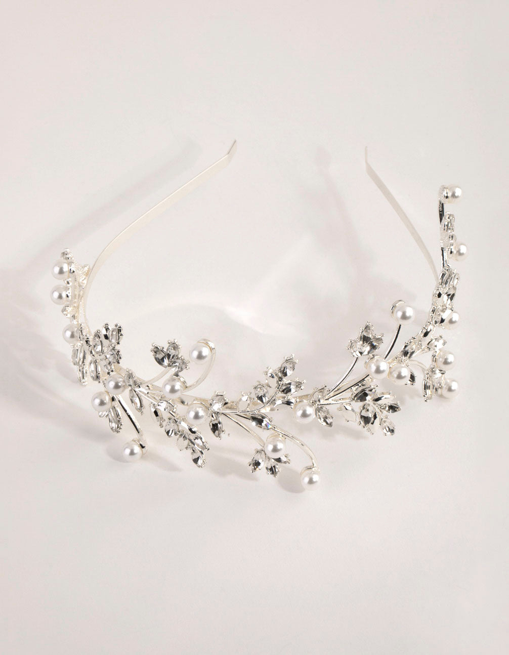 This stunning headband is silver toned and features a beautiful vine design with faux pearl and diamante embellishments. Wear it for a regal finishing touch to your formal outfits.