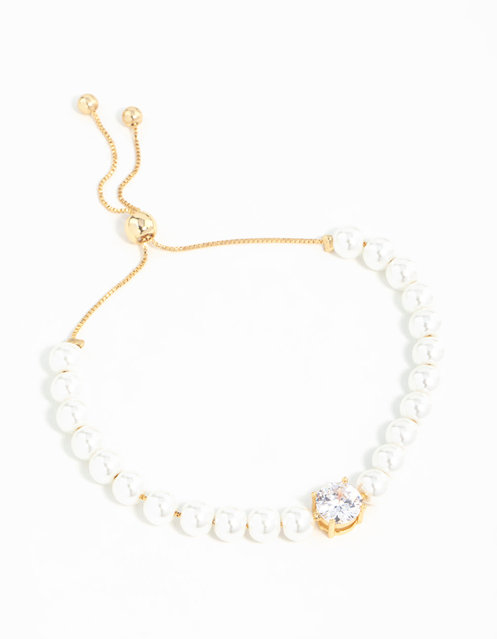 Gold Plated Pearl & Cubic Zirconia Toggle Bracelet